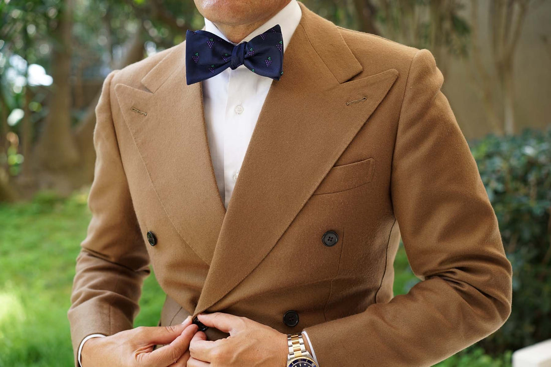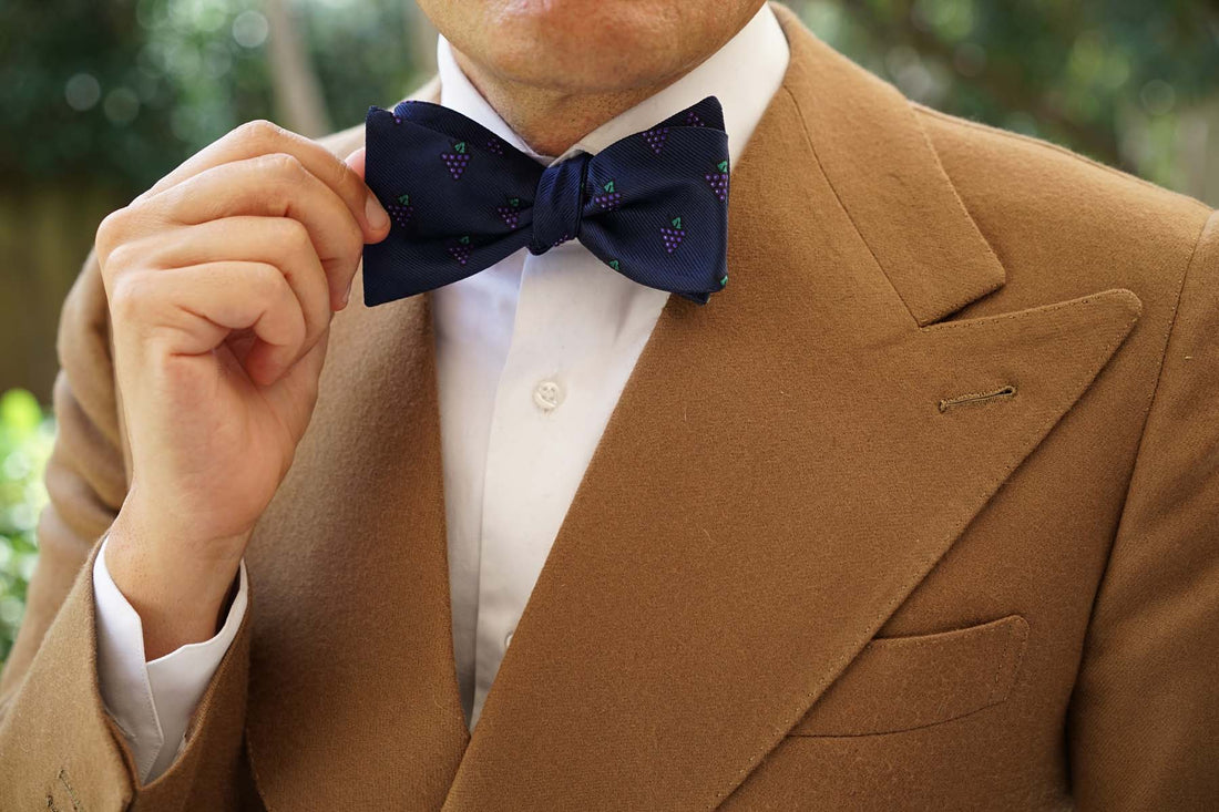 OTAA’s Purple Grapes Self Tie Bow Tie makes a sophisticated statement. Grapes are said to be the world’s oldest cultivated fruit. They were inscribed on the walls of ancient Egyptian tombs, suggesting they’ve been around for at least 8,000 years. Egyptians were the first civilisation to turn grapes into wine, and since then, grapes have been symbol of prosperity and fertility.