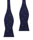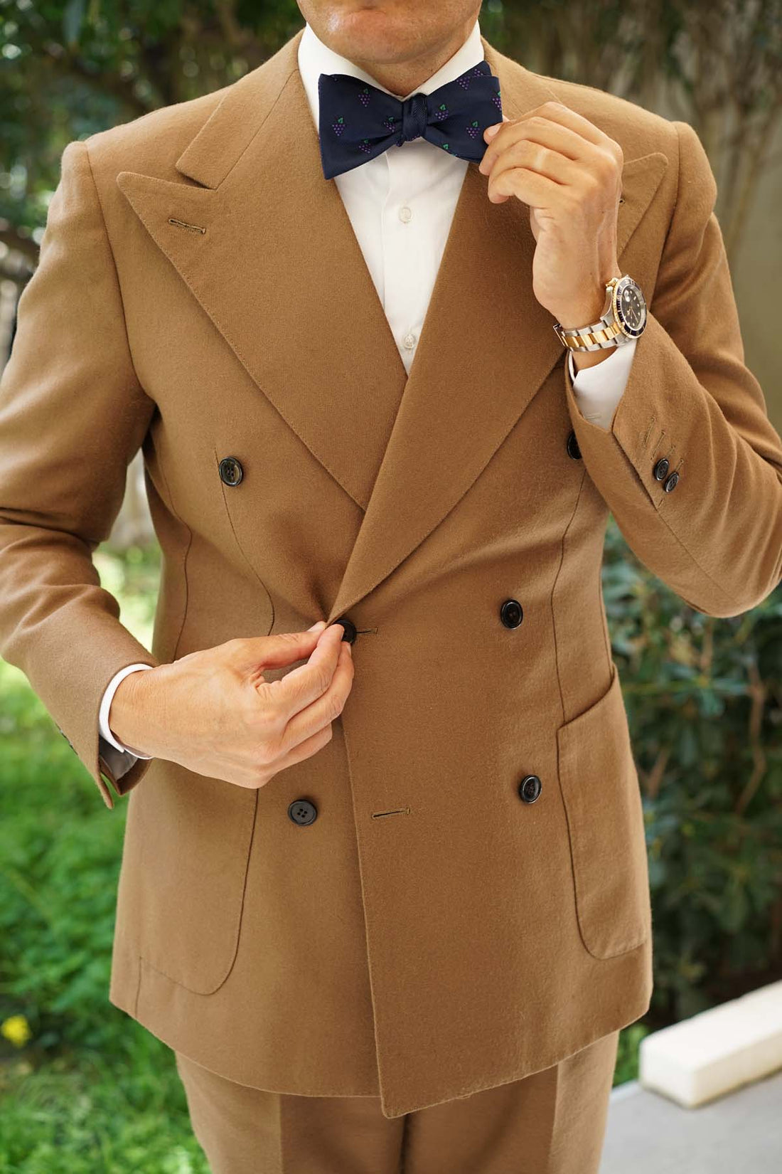 Luxurious details are part of OTAA’s rich history, and this Purple Grapes Self Tie Bow Tie boasts plenty. Crafted by hand and tailored to perfection, this untied bow tie was cut from a plush woven fabric to ensure you're blessed with luxurious comfort. Let the sumptuous purple and green hues make an exquisite complement to the navy blue canvas. Designed exclusively by the Brothers at OTAA.