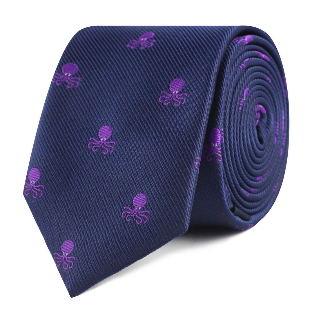 The classic navy blue threading through this design gives the Purple Octopus Skinny tie a modern update with a slim, streamlined cut. Match the sharp silhouette with a trim-fitting shirt and finish with a collar bar for added flair.