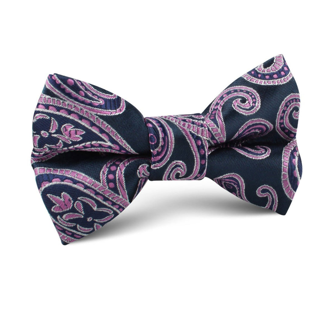 Impress your mates at the Royal Palace with the Qajar Dynasty Purple Paisley Kids Bow Tie. The matte shade of the dark navy blue satin pairs to pure perfection with the mauve paisley motif finished in fine style with a gentle sheen and intricate detail. The perfect jewel in the crown that is your outfit.