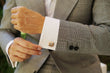 Includes a small cylinder at the back that rotates 90 degrees to hold the cufflink in place