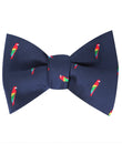 Crafted by hand and tailored from a soft fabric, this Rainbow Parrot Self-Tie Bow Tie makes a comfortable staple to your everyday styles. Flamboyantly decorated with exotic parrots, this untied bowtie features red, yellow, green and light blue hues on a sophisticated navy blue base. We recommend wearing it to make an outlandish statement at your next evening engagement. Designed exclusively by the Brothers at OTAA.