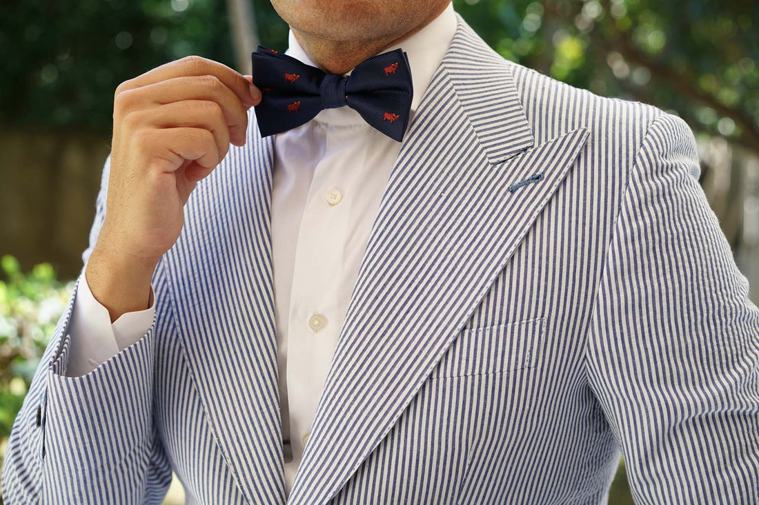 OTAA’s Red Bull Bow Tie makes a powerful statement. Stitched by hand and tailored from a plush satin fabric, this pre-tied bowtie adds a high-quality aspect to your tailored looks. The bull has been prized as a symbol of power and strength throughout the centuries. On Wall Street, the bull is celebrated in a grand statue that signifies the power and tenacity of Wall Street bankers. Red bulls are featured in this Red Bull Bow Tie to give your stride a confident edge - wear it in the boardroom to achieve a dominant look. Designed exclusively by the Brothers at OTAA.