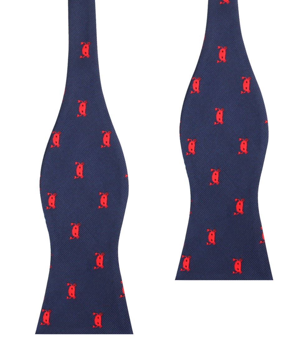 On this design, red crabs crawl along a navy blue fabric, giving your styles an outlandish perspective. Constructed by hand and tailored from a plush, navy blue fabric, this Red Crab Self Tie Bow Tie is as luxuriously comfortable as it is stylish. Wear it to make a strong statement as part of casual and boardroom ensembles. Designed exclusively by the Brothers at OTAA.