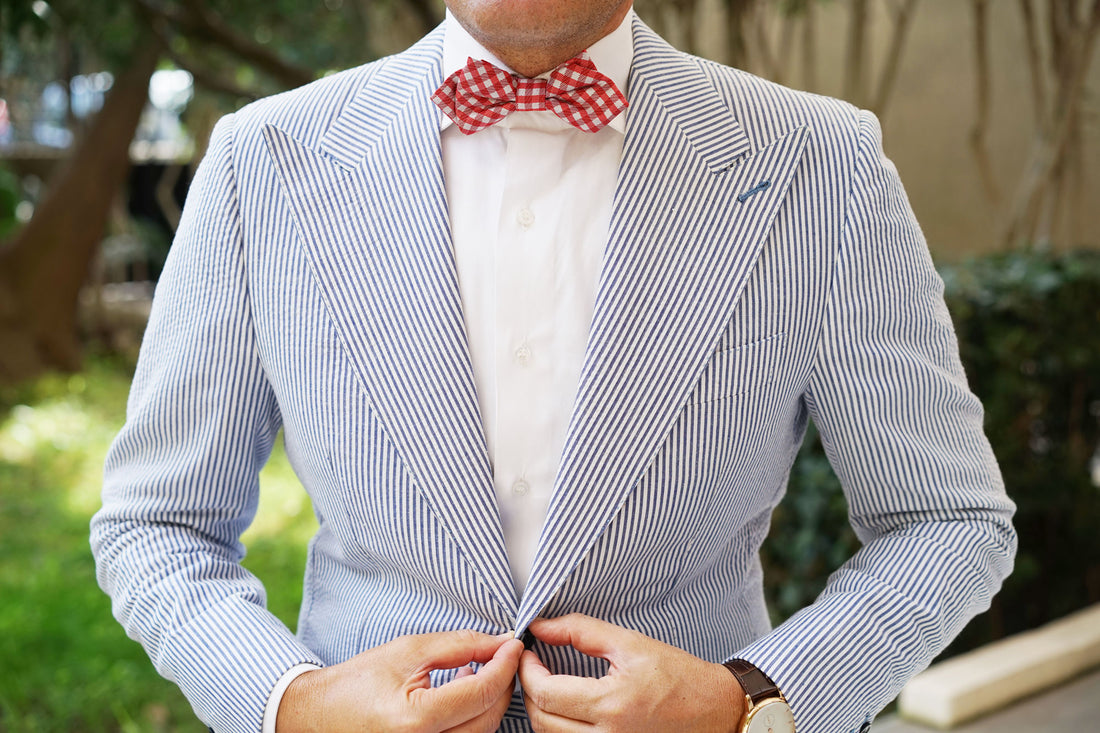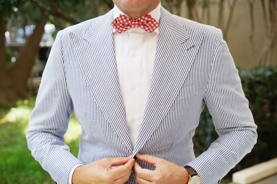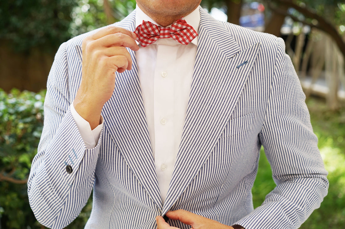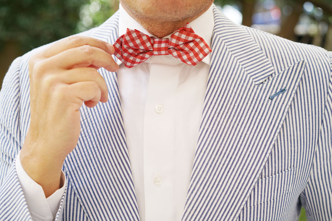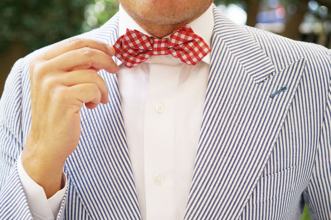 Synonymous with OTAA's laid-back style ethos, the Red Gingham Diamond Bow Tie delivers on comfort as well as sophistication. The rustic red and white details of this design are reminiscent of traditional gingham styles, and with a luxurious hand-tailored fabric; it's no doubt you'll be gliding through the day with comfort and elegance. From being designed exclusively in-house to being stitched meticulously by hand, the Red Gingham Diamond Bow Tie skips no corners when it comes to superior quality. Let its relaxed features and effortless style give you a flamboyant edge of detail at your weekend social engagements; and when paired with a formal suit, you'll be set to make an elegant statement at weddings. Designed exclusively by the Brothers at OTAA.