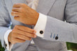 Includes a small cylinder at the back that rotates 90 degrees to hold the cufflink in place
