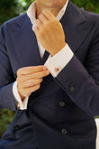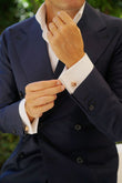 Includes a small cylinder at the back that rotates 90 degrees to hold the cufflink in place