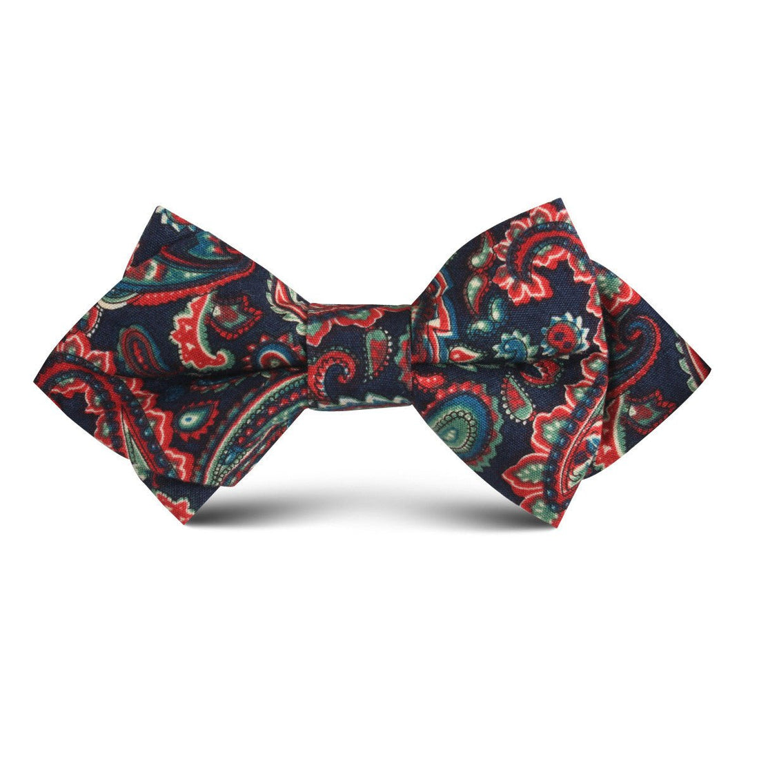 This superb boys diamond bow tie features an indulgent navy complexion with vibrant green, blue, red and white highlights. OTAA’s hand-stitched approach to tailoring means this Rocambolesco Green Paisley Kids Diamond Bowtie is smooth to the touch and emanates a high-quality presence as part of formal ensembles. The intricate paisley design showcases floral motifs for an accomplished asset to formal styles. Designed exclusively by the Brothers at OTAA.