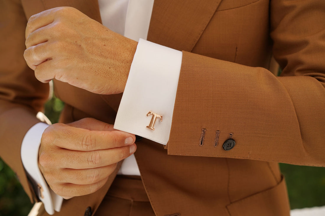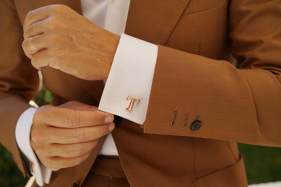 These understated Rose Gold Letter T Cufflinks by OTAA exude a classically refined sense of style. Let the glorious rose gold add a smart accent to your formal outfits, for a look that can take you from the boardroom to a black tie event. These cufflinks are subtly detailed and exude refinement.