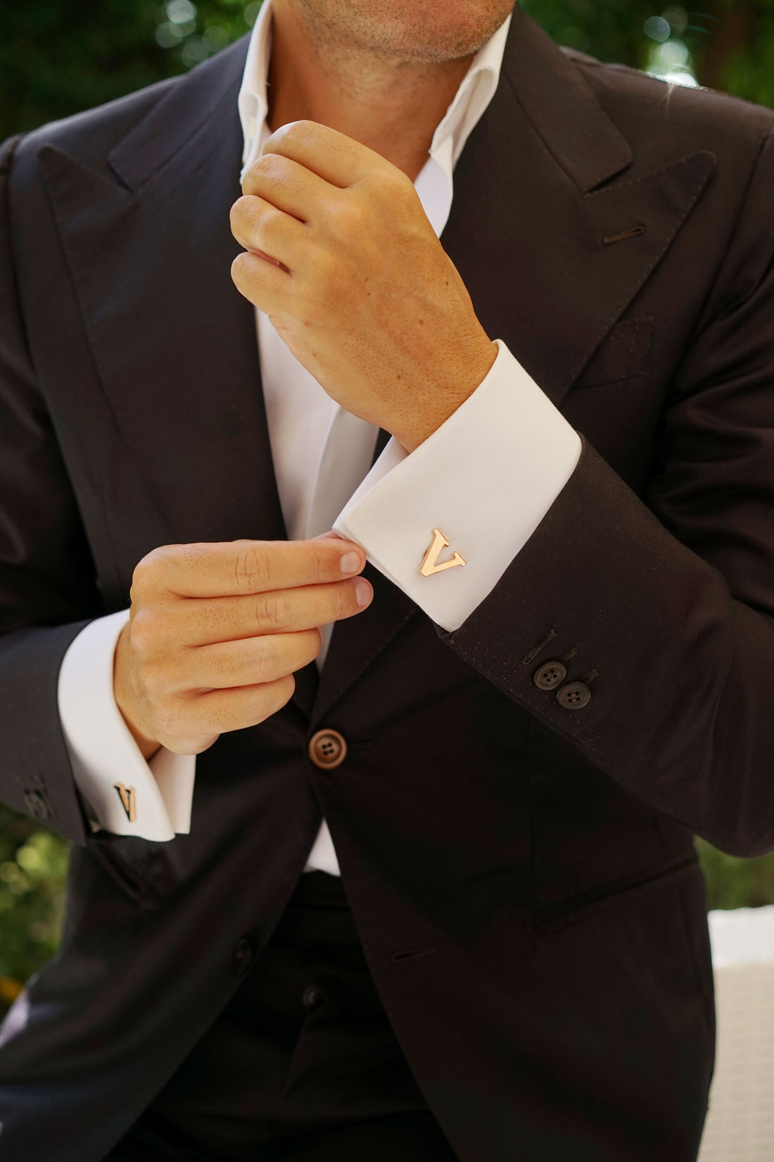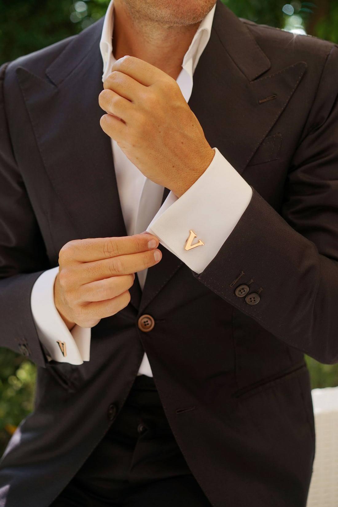 These understated Rose Gold Letter V Cufflinks by OTAA exude a classically refined sense of style. Let the glorious rose gold add a smart accent to your formal outfits, for a look that can take you from the boardroom to a black tie event. These cufflinks are subtly detailed and exude refinement.