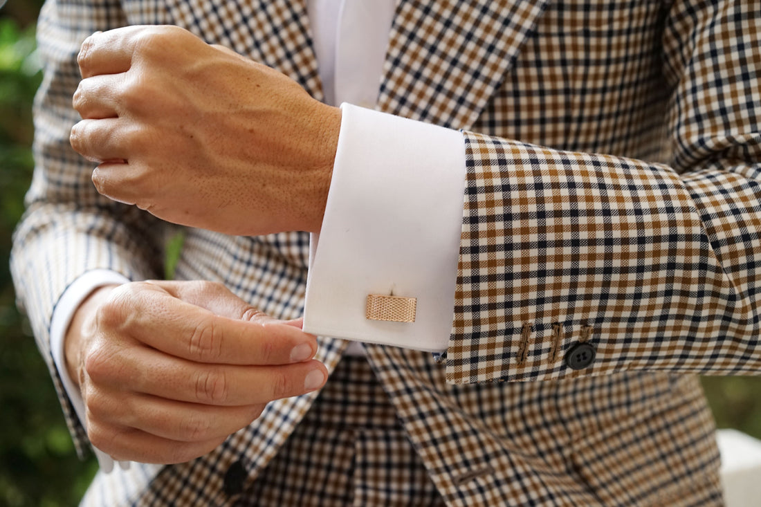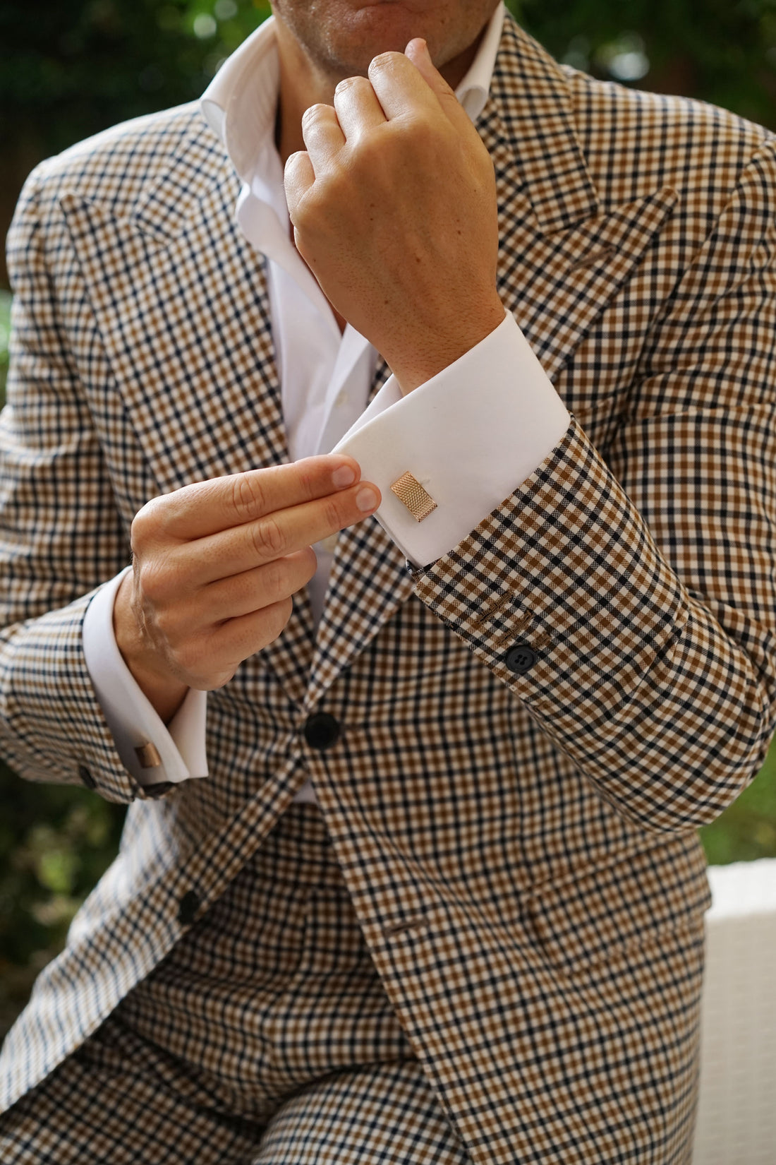 A prized heirloom to the OTAA collection, these Rose Gold Textured Rectangular Bend Cufflinks are exuberant in charm and sophistication. Timeless elegance and impenetrable class are encased in the fruition of OTAA's Rose Gold Textured Rectangular Bend Cufflinks, and with hand-chiselled embellishments and rose gold finish, these cufflinks are matched in design and quality. Expertly crafted from rhodium, these Rose Gold Textured Rectangular Bend Cufflinks are adorned with intricate dotted embellishments and dimensional frame. The rose gold finish incites a warm palette that will finesse your attire with a blushing detail.