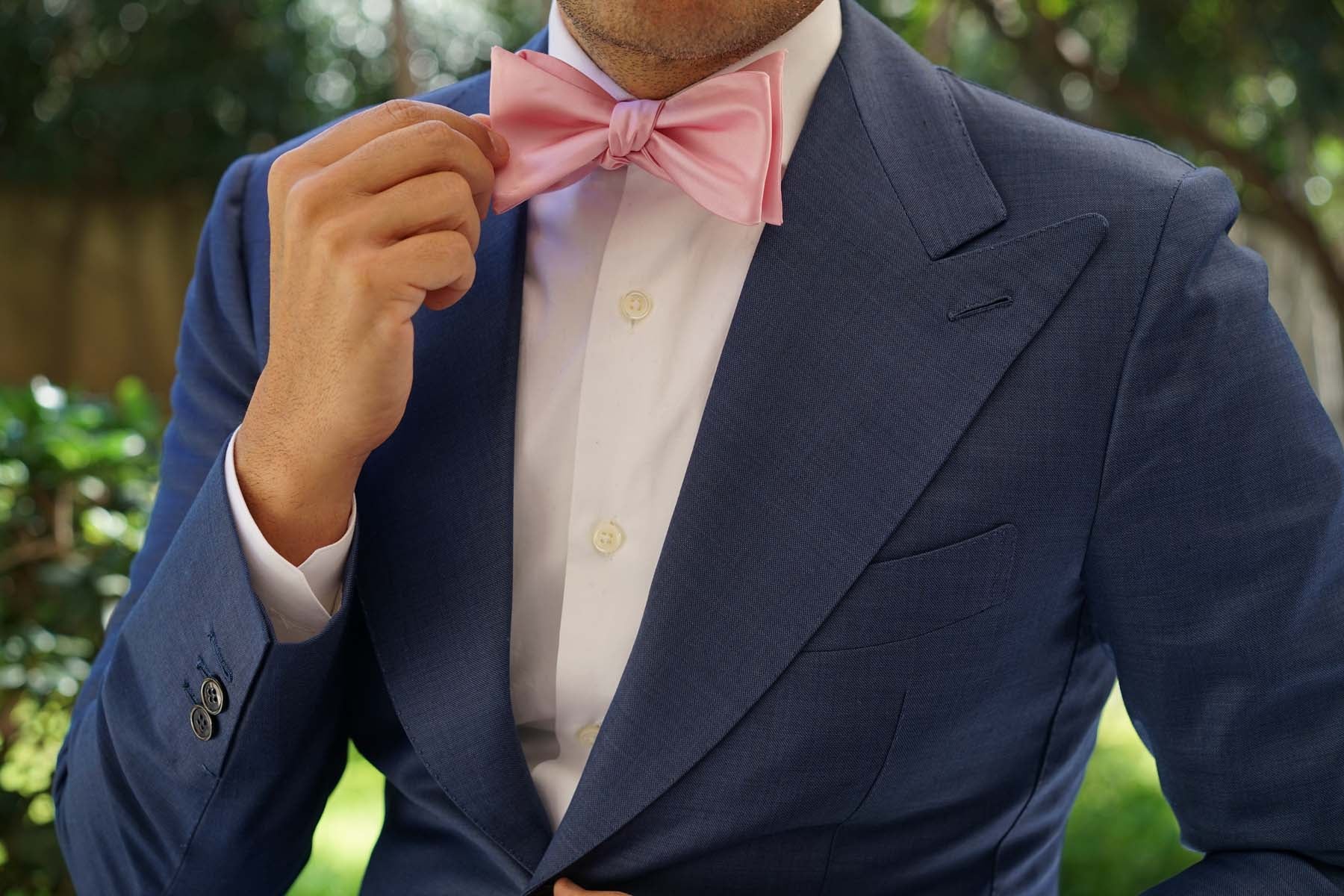 Add an essence of romance to your looks with OTAA’s Rose Pink Satin Self Tie Bow Tie. Exquisitely finessed in a rose pink palette, this untied bow tie adds a flourishing accent to classic styles. The hand-stitched features and fine tailoring means this Rose Pink Satin Self Tie Bow Tie brings a high-quality presence to formal ensembles. Luxuriously handcrafted from a fine pink satin, this untied bow tie is smooth to the touch and showcases a subtle lustre finish. Wear it to make an elegant statement at formal events. Designed exclusively by the Brothers at OTAA.