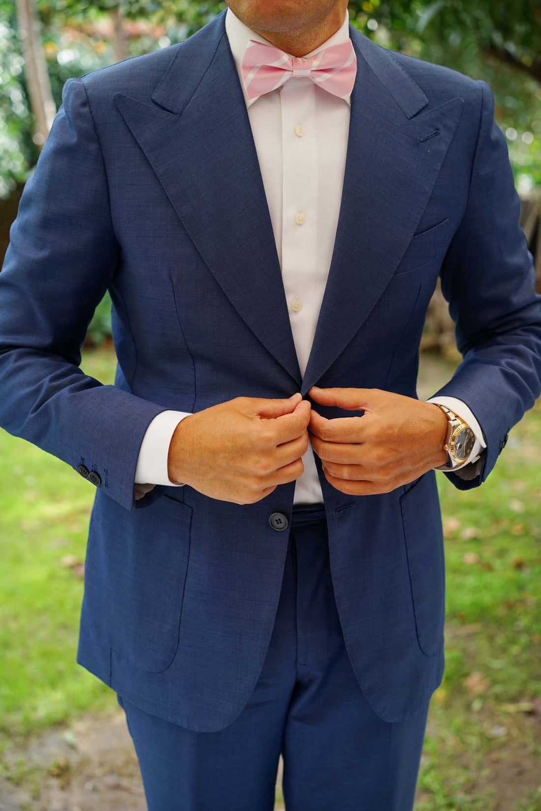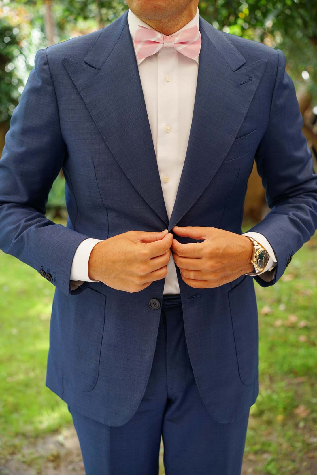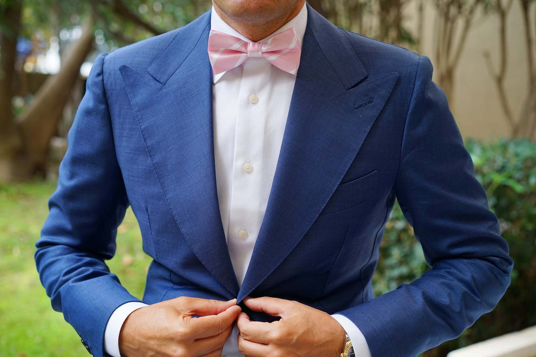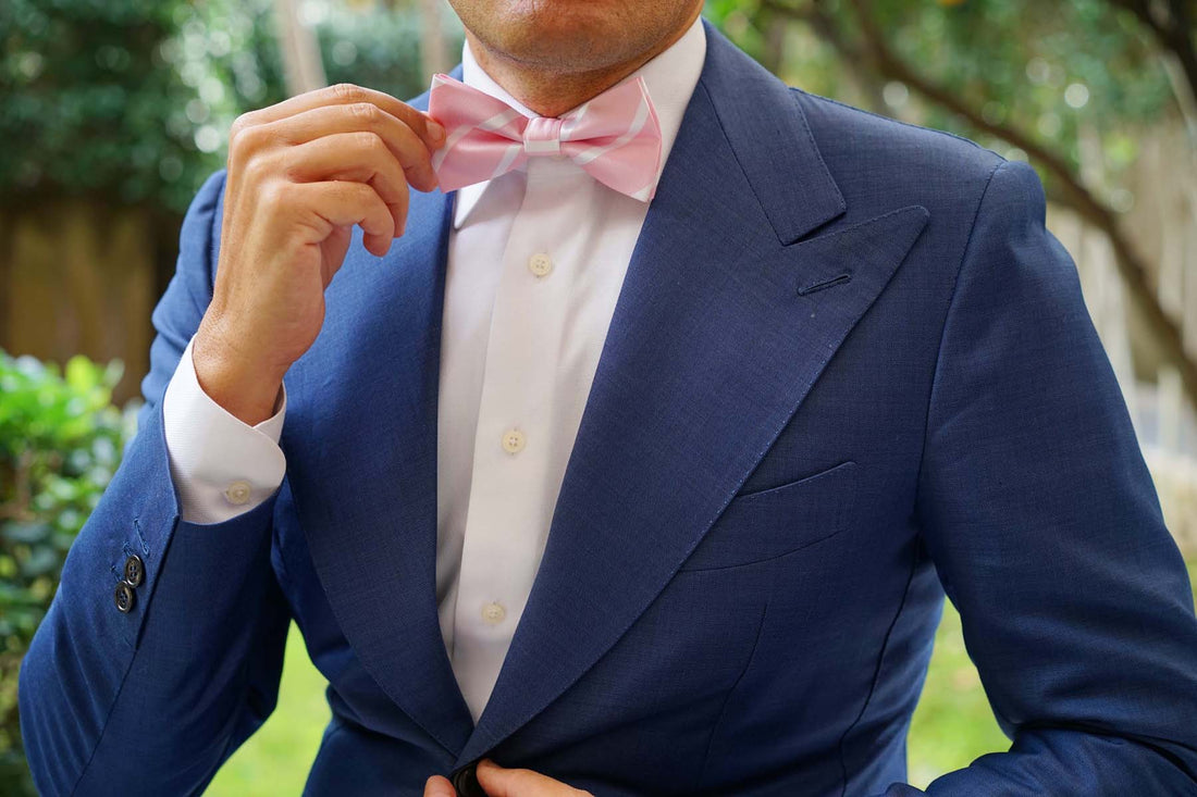 OTAA’s Rose Pink Striped Bow Tie is elegantly designed and crafted by hand. Luxuriously finessed in a rose pink palette, this pre-tied bowtie offers a flourishing accent to your formal tailoring. The sumptuous satin fabric is hand-stitched to perfection, meaning it brings a high-quality perspective to your wardrobe. Let the magnificent white diagonal stripes offer a stylish point of difference to classic satin designs and the vertical embellishments bring a textured appeal. Wear this Rose Pink Striped Bow Tie to accomplish a sophisticated look at formal events. Designed exclusively by the Brothers at OTAA.