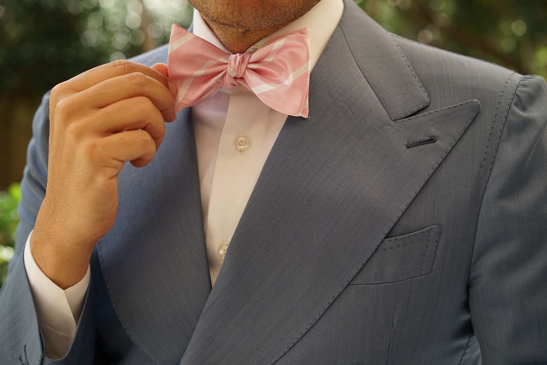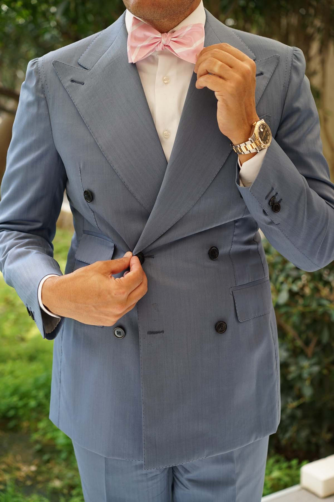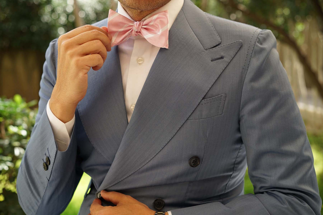 OTAA’s Rose Pink Striped Self Tie Bow Tie is elegantly designed and crafted by hand. Luxuriously finessed in a rose pink palette, this untied bow tie offers a flourishing accent to your formal tailoring. The sumptuous satin fabric is hand-stitched to perfection, meaning it brings a high-quality perspective to your wardrobe. Let the magnificent white diagonal stripes offer a stylish point of difference to classic satin designs and the vertical embellishments bring a textured appeal. Wear this Rose Pink Striped Self Tie Bow Tie to accomplish a sophisticated look at formal events. Designed exclusively by the Brothers at OTAA.