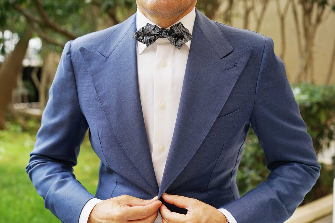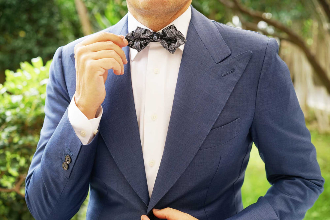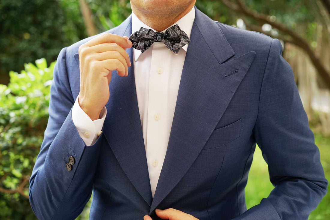 To design this Ross Archipelago Black Paisley Diamond Bowtie, we took a business trip the Ross Archipelago islands in Antarctica. We spent months travelling on a haphazard canoe and quickly realised that Antarctica was a little less welcoming than anticipated. We sat on a floating ice cube for days, surrounded by nothing but a single penguin and a whirling blizzard. We were reaching the cusp of hypothermia, when out of nowhere; a small Eskimo with a wispy goatee invited us back to his igloo. He fixed us a hot cup of coco. Inspired by the gracious hospitality of Mr Pengasis (that was his name), we present you with the Ross Archipelago Black Paisley Diamond Pre-Tied Bowtie.