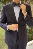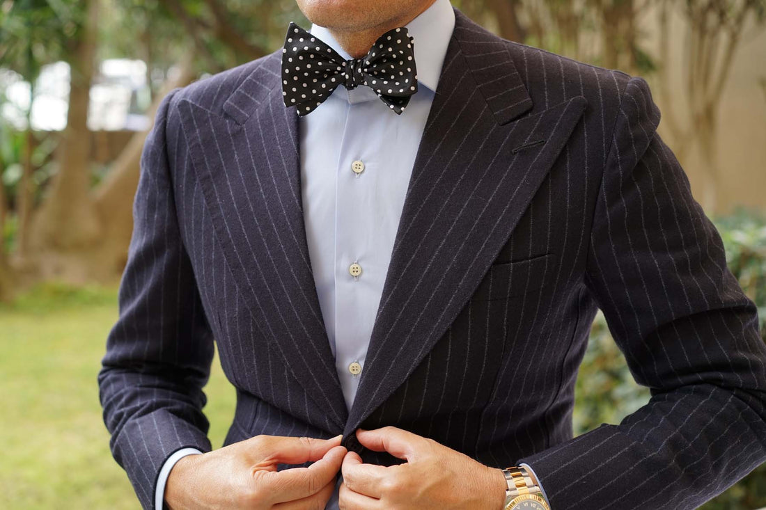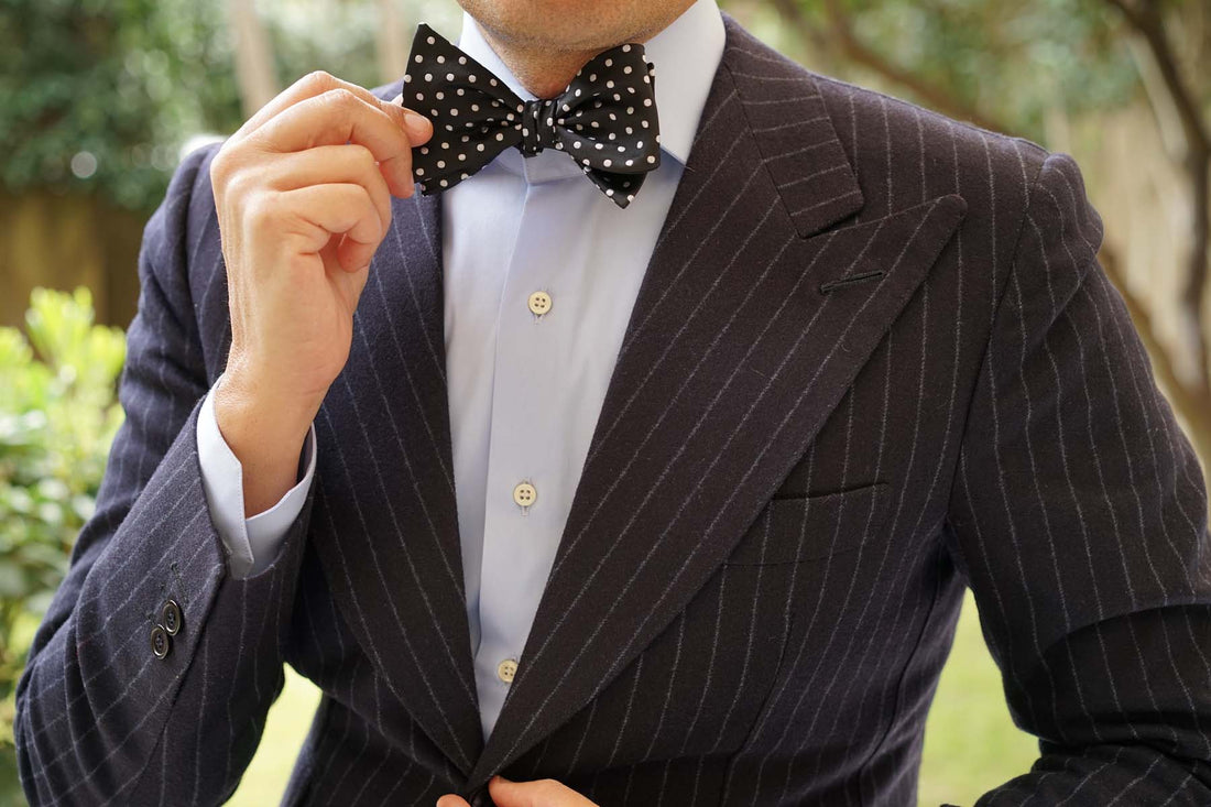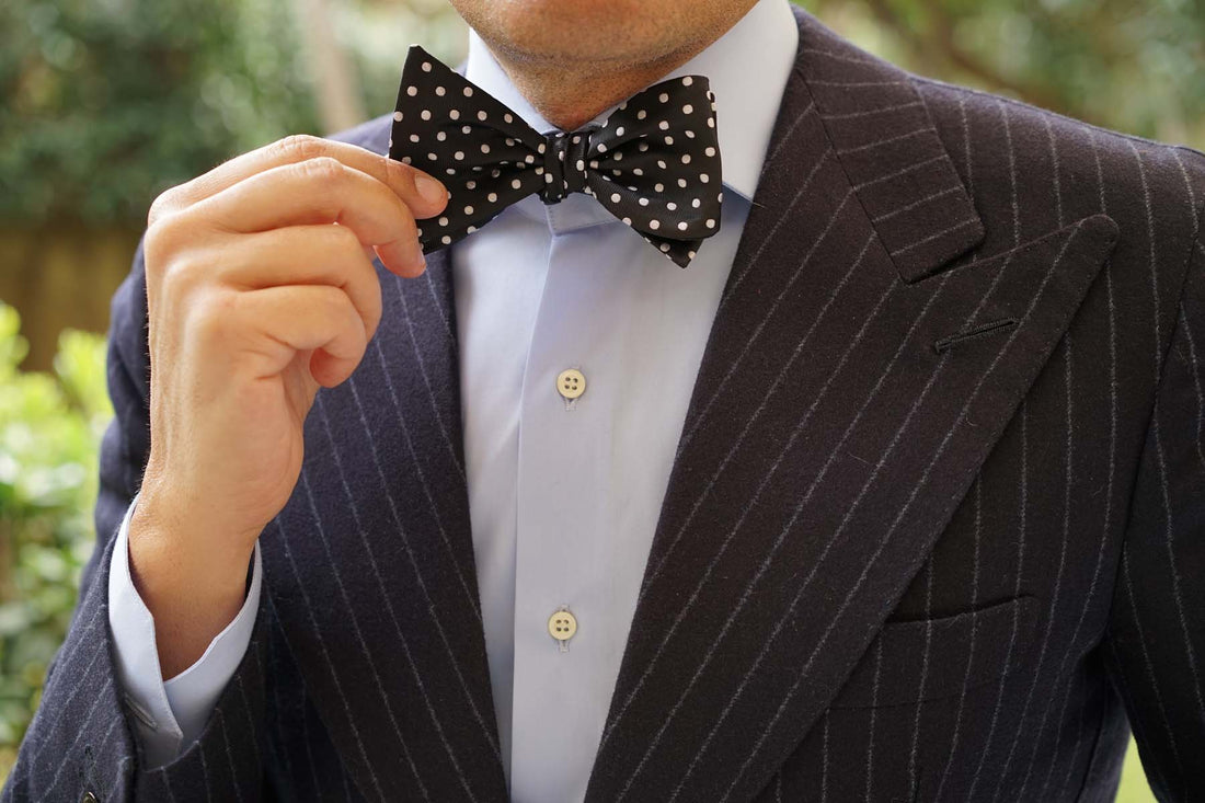 The Royal Black Polka Dot Self Tied Bow Tie has a large white polka dot pattern spread throughout and is a must for any men’s untied bowtie collection.