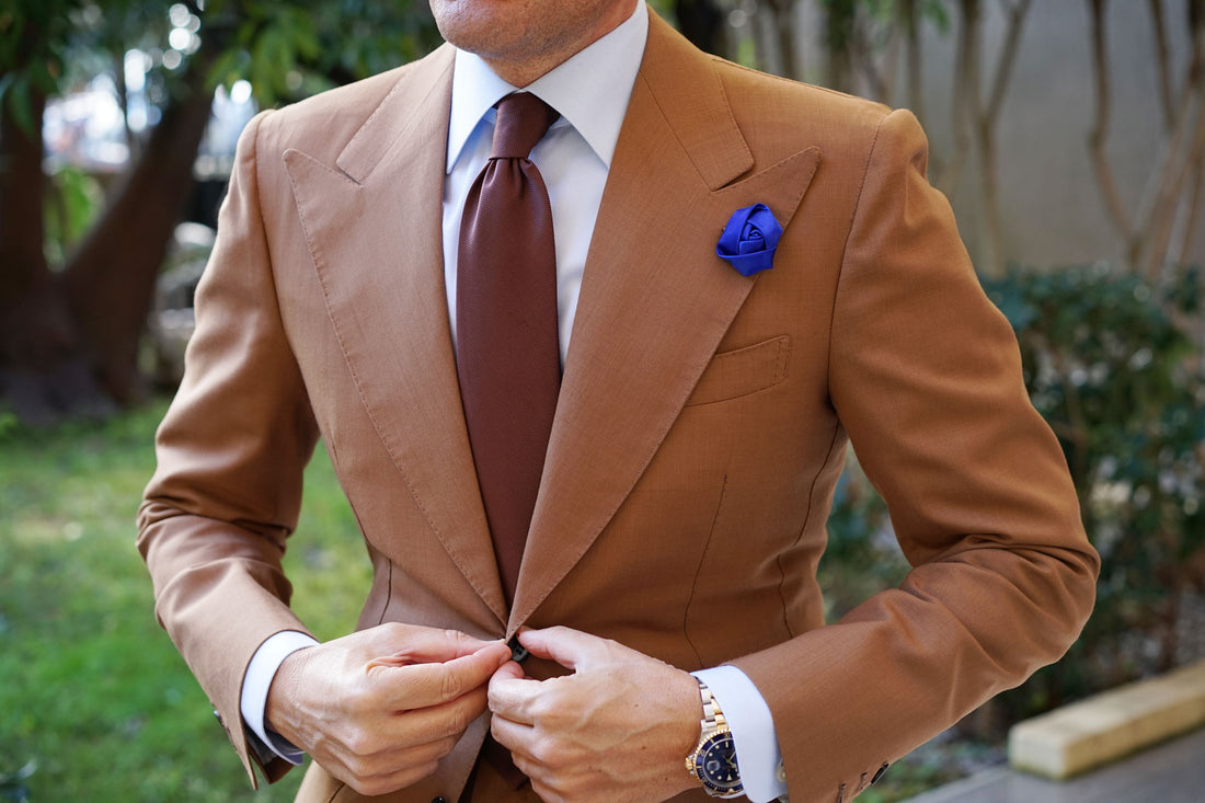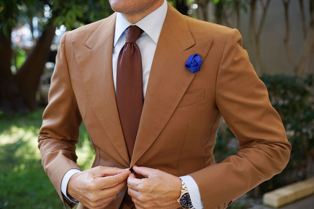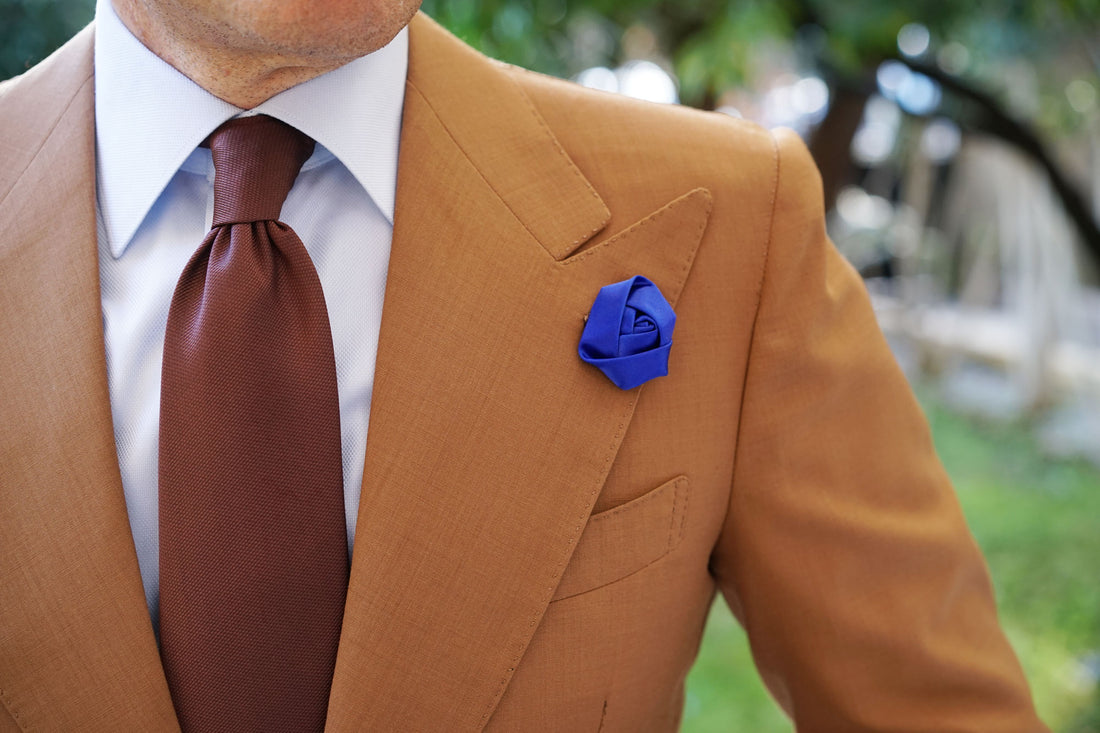 Adorned with a royal palette and intricate floral design, this Royal Blue Satin Rose Lapel Pin is fit for a man of noble entity. The luxurious folds of soft satin are encased in a rose design that delivers unmatched textural detail. Hand-crafted with expertise, the flower sits atop a silver rhodium pin to deliver on quality and style. The royal blue complexion instils masculinity in the elegant floral design that will exquisitely adorn your formal looks. Pair with a crisp white shirt to set off your style with everlasting charm.