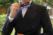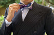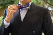 The Royal Violet Checkered Bow Tie is a nuanced classic, and this OTAA version is kitted out with extra stylish and luxurious details. Each pre-tied bow tie is hand-crafted using a threading technique that makes them incredibly luxurious and reduces the stretch of the pre-tied bow tie. A splash of discreet violet, white and purple is used to increase its texture. They are then lined on the inner to add volume by hand in a process that takes meticulous precision and time to achieve the deep, mottled fabric that makes each piece unique.