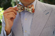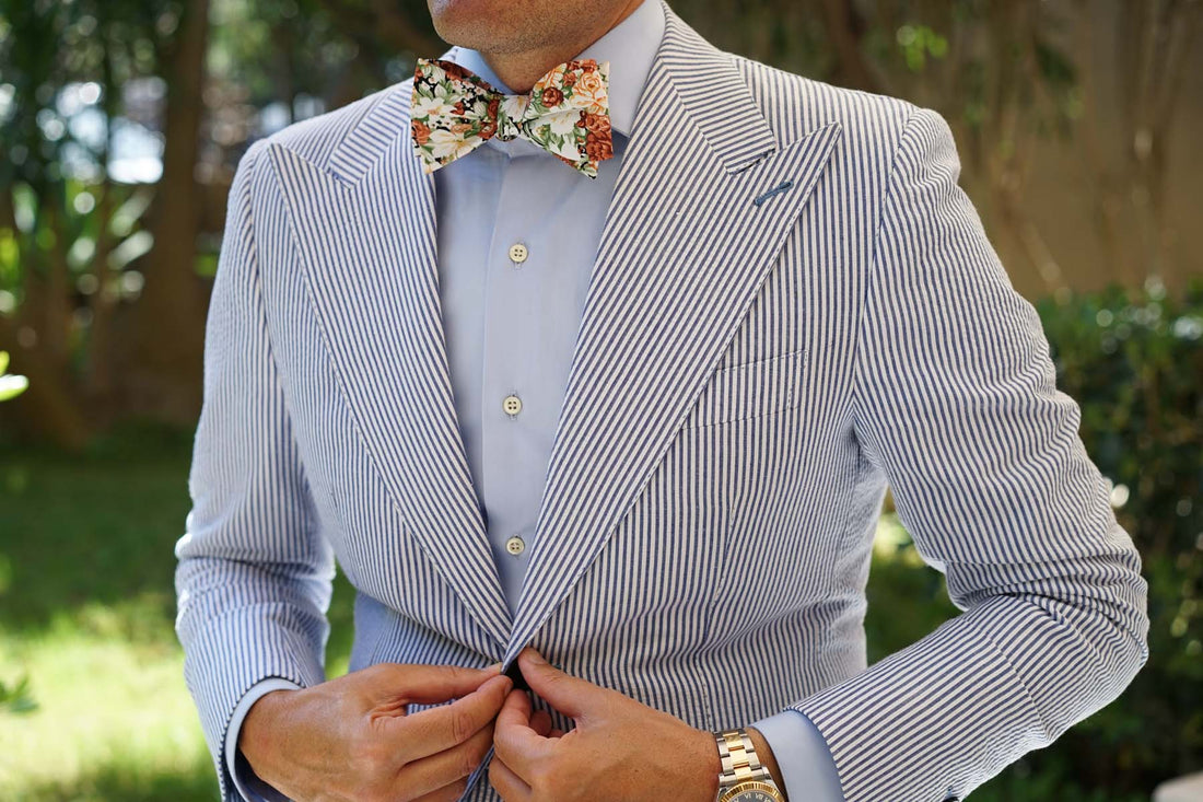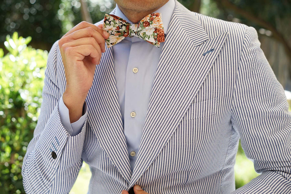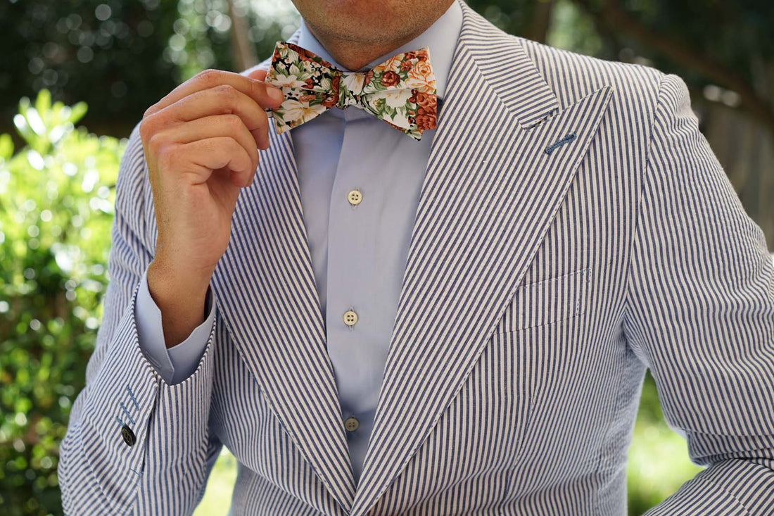 When designing this San Pietro Orange Floral Self Tie Bow Tie, we hired a special consultant; his name was Mr Bond. Not to be confused with any other Bonds- our Mr Bond was a short Italian guy with a wispy goatee. He said, “You know, this San Pietro Orange Floral Untied Bow Tie is, you know, one of the best designs I’ve ever seen.. It would go great with a classic suit jacket!”
