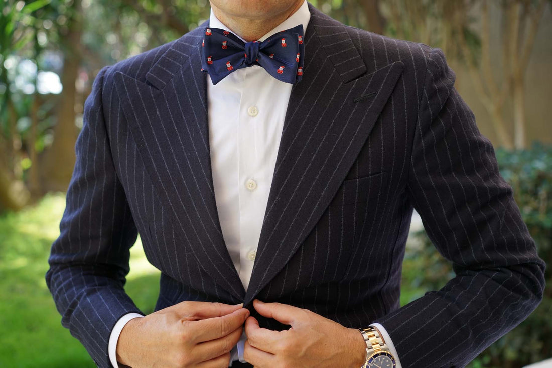 Finessed with red, white, black and pink hues, the Santa Claus Pixel Untied Bow Tie features an extravagant navy blue base. The pixelated santas are hand-stitched with great detail and sit atop a well-tailored fabric. Superbly textured, this self tie bow tie features subtle diagonal lines to give your ensembles a high-quality aspect. Designed exclusively by the Brothers at OTAA.