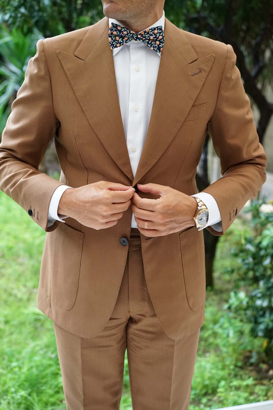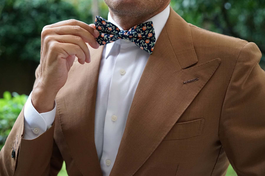 This Santo Domingo Floral Bow Tie combines a heavenly mix of elegance and flamboyance. The refined navy palette is met with ebullient orange and green florals for a sophisticated accent. Luxuriously tailored and stitched by hand, this pre-tied bowtie makes a perfect pairing for formal suits. Designed exclusively by the Brothers at OTAA.
