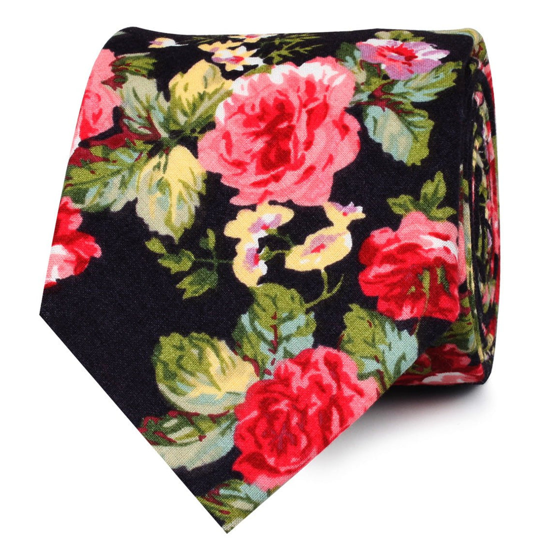 Crafted by hand and tailored from a plush cotton fabric, this Santorini Pink Roses Skinny Tie brings a high-quality presence to formal styles. With a sumptuous black base flourishing rose design, the Santorini Pink Roses Thin Tie is elegantly finessed with pink, green and red floral details. Designed exclusively by the Brothers at OTAA, this thin tie will incite your wardrobe with sophistication.
