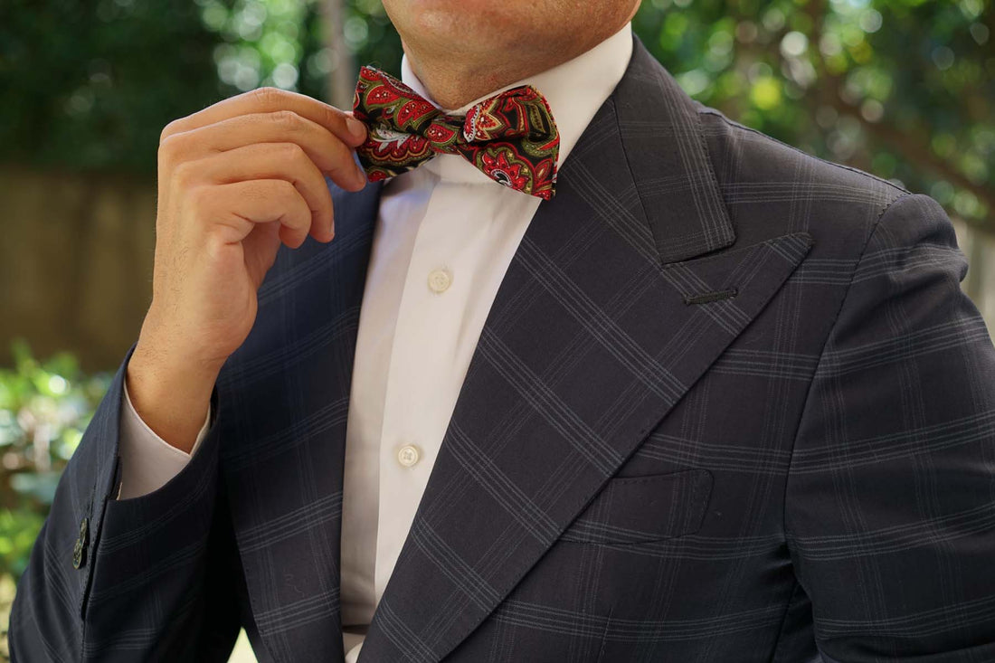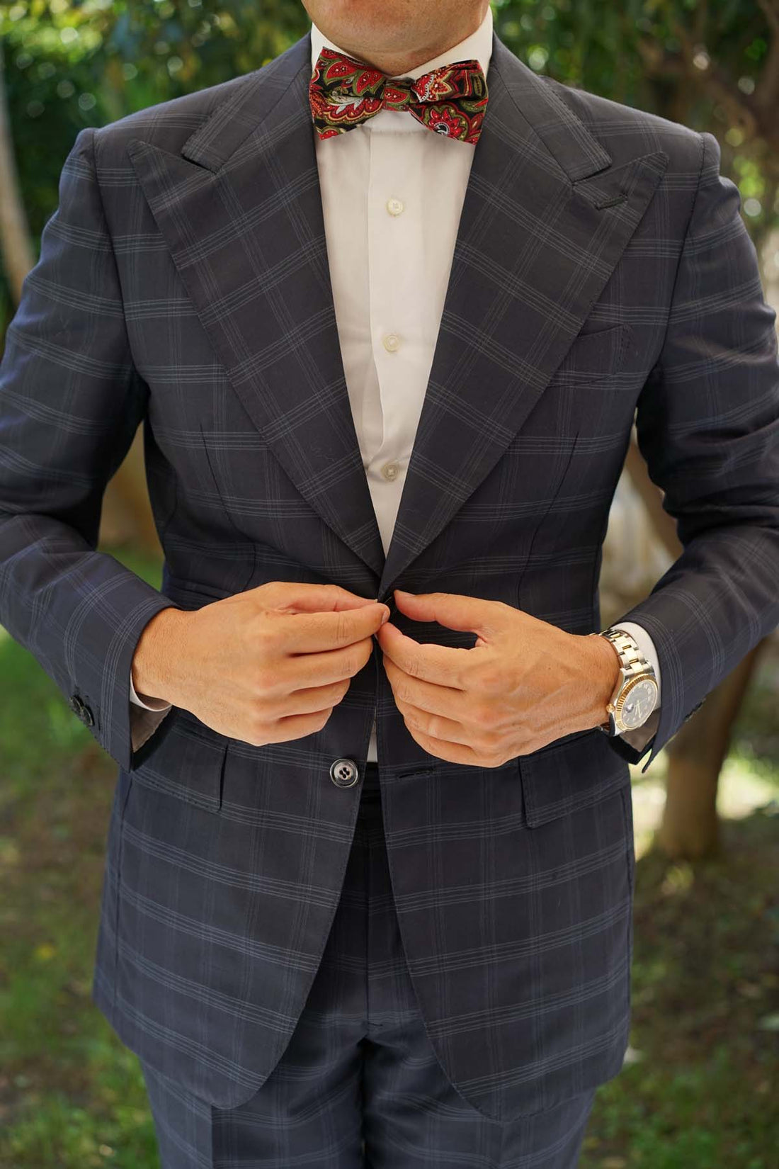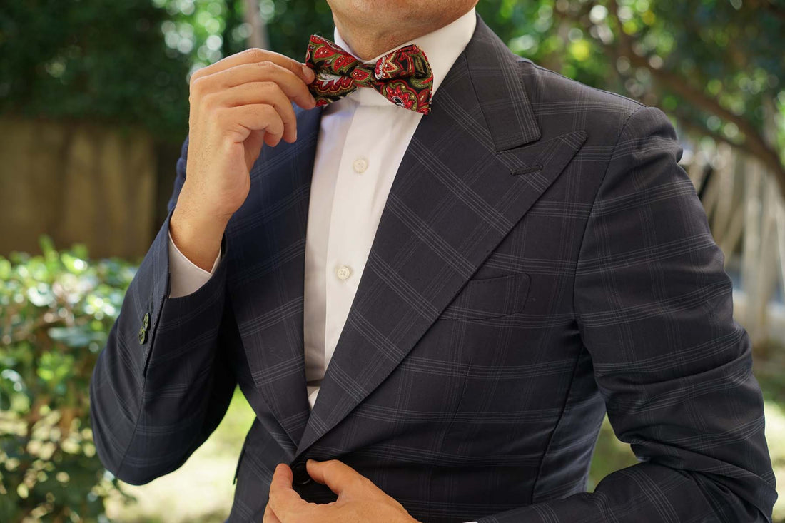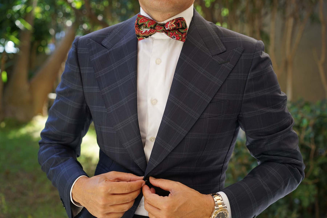 This superb design features a hand-sewn body and detailed paisley pattern; making it a luxurious staple. The intricate floral paisley pattern is met with decadent black, red, green, yellow and light blue highlights for an artistic outlook. Regally designed and constructed with elegance, this Sao Paulo Paisley Red Pre-tied Bowtie makes as a knock-out option for your formal events. Wear it to give an accomplished finish to tailored styles. Designed exclusively by the Brothers at OTAA.