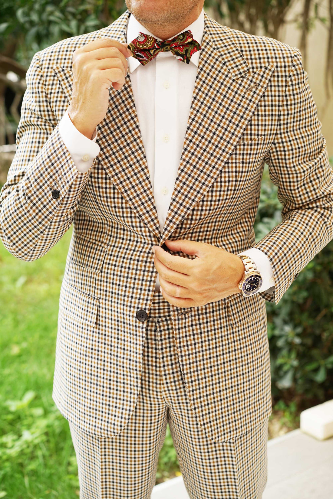 This superb design features a hand-sewn body and detailed paisley pattern; making it a luxurious staple. The intricate floral paisley pattern is met with decadent black, red, green, yellow and light blue highlights for an artistic outlook. Regally designed and constructed with elegance, this Sao Paulo Paisley Red Diamond Pre-Tied Bowtie makes as a knock-out option for your formal events. Wear it to give an accomplished finish to tailored styles. Designed exclusively by the Brothers at OTAA.