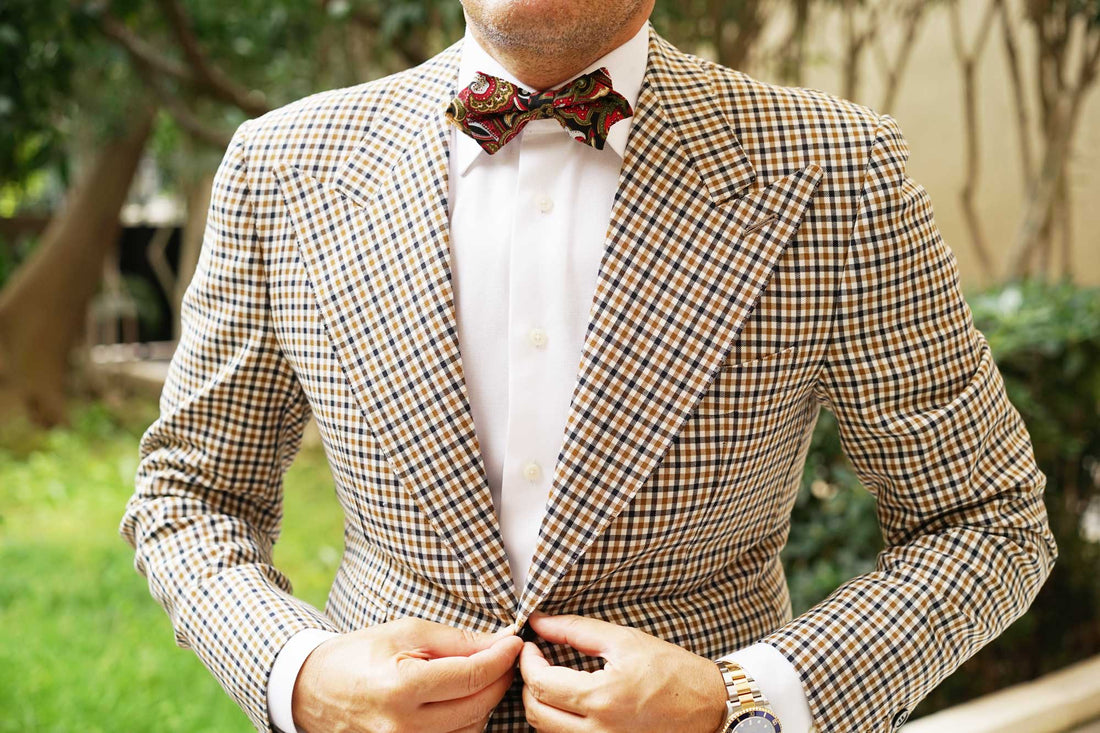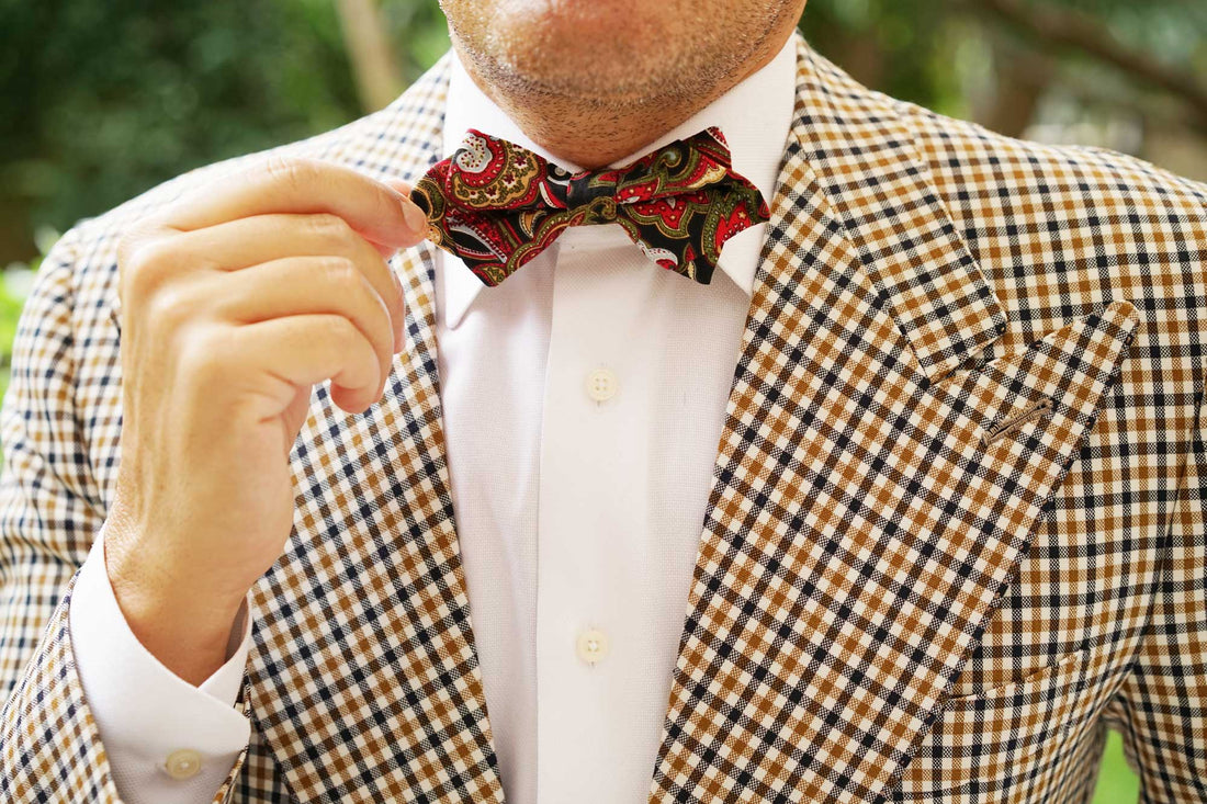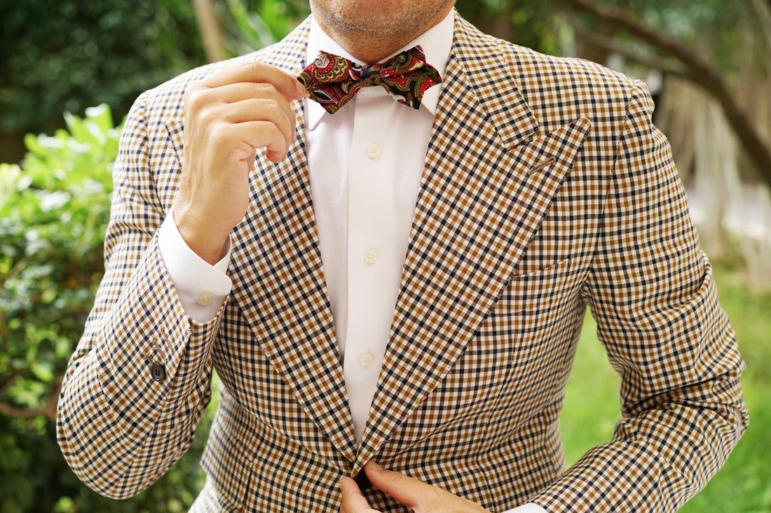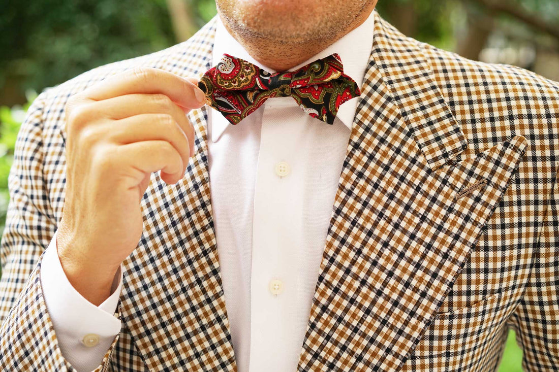 To aid with the design of the Sao Paulo Paisley Red Diamond Bowtie, the Brothers at OTAA made a quick business trip to Brazil. Purely for research purposes, of course. The brothers were busy working hard under the shade of a palm tree when suddenly a flamboyant red and green bird caught his eye; “That’s it. That bird is the inspiration for our bow tie! Our work here is done”. The brothers spent ten more days on the beach before finally going home. Inspired by genuine hard work and a really cool bird, OTAA presents the Sao Paulo Paisley Red Diamond Pre-Tied Bowtie.