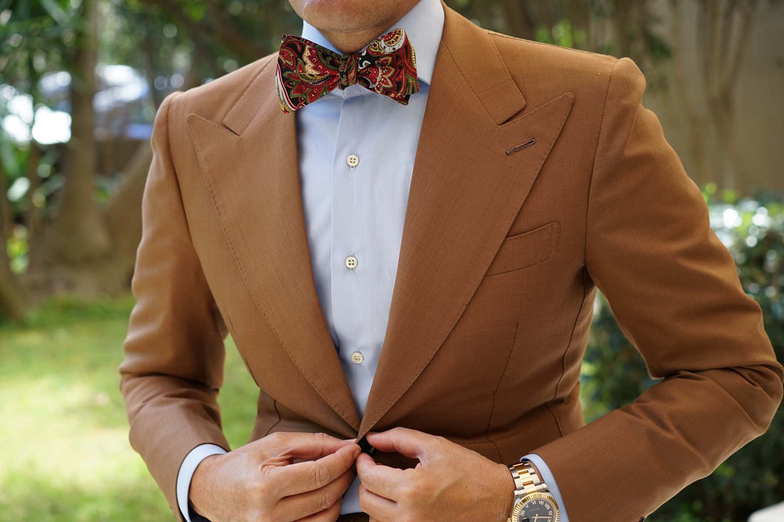 To aid with the design of the Sao Paulo Paisley Red Self Tie Bow Tie, the Brothers at OTAA made a quick business trip to Brazil. Purely for research purposes, of course. The brothers were busy working hard under the shade of a palm tree when suddenly a flamboyant red and green bird caught his eye; “That’s it. That bird is the inspiration for our bow tie! Our work here is done”. The brothers spent ten more days on the beach before finally going home. Inspired by genuine hard work and a really cool bird, OTAA presents the Sao Paulo Paisley Red Untied Bow Tie.