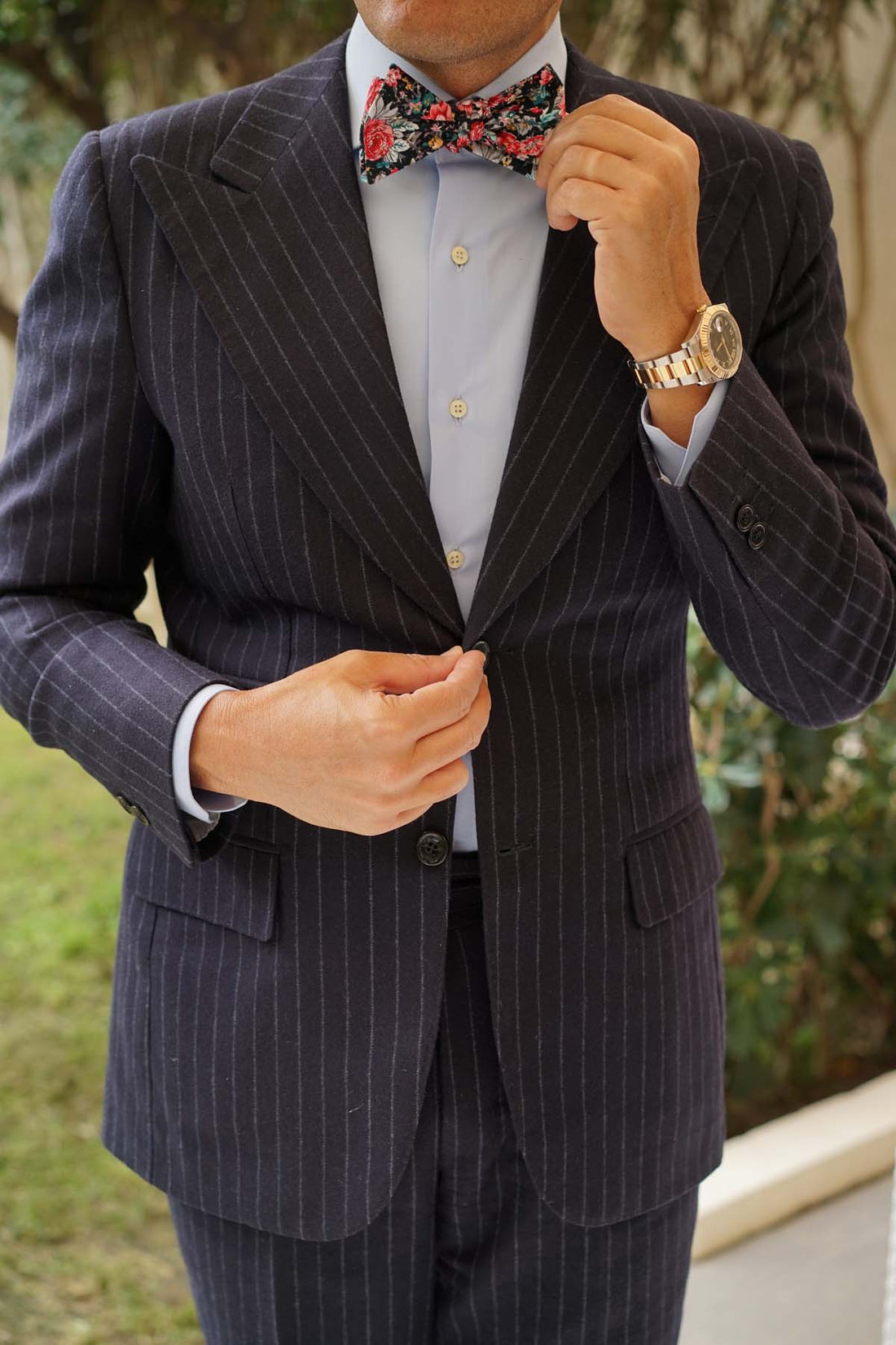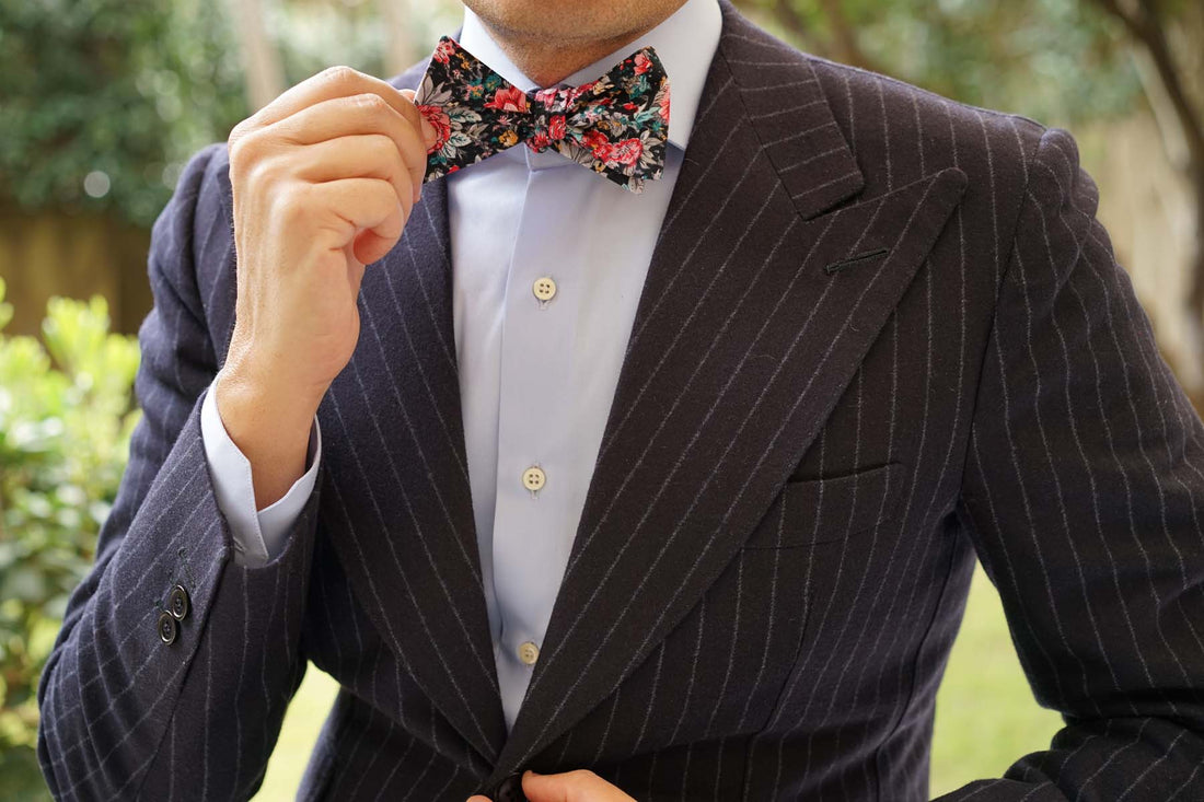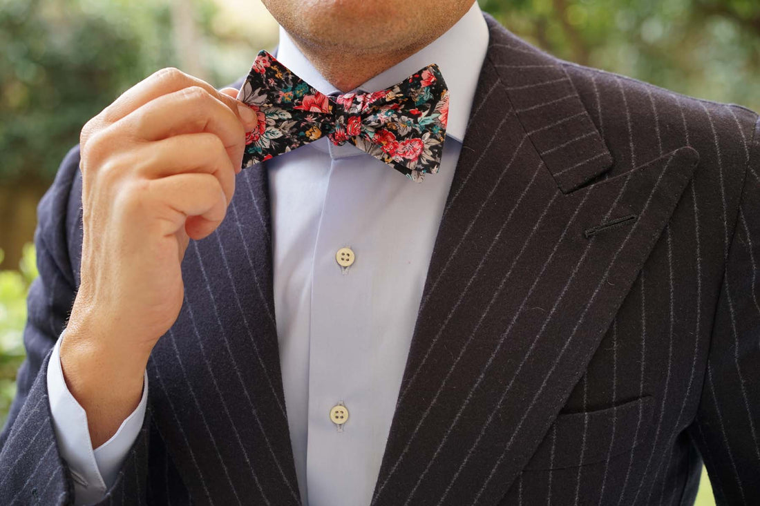 Crafted by hand and tailored with elegance, the Sardinia Bloom Floral Self Tie Bow Tie makes a dashing addition to formal ensembles. The artisanal floral pattern is complemented by aqua, pink and orange highlights atop an indulgent black canvas. Exclusively designed by the Brothers at OTAA, this superb Sardinia Bloom Floral Untied Bow Tie offers an accomplished finish to dapper evening looks.