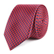 Houndstooth, or pied-de-poule, offers an abstract four-point chequer pattern that imbues your tailored ensembles with an artistic accent. This Scarlet Red Houndstooth Thin Tie features navy blue and red hues for an eye-catching palette. Tailored with excellence and designed in-house, this Scarlet Red Houndstooth Skinny Tie will elevate the exclusivity of your formal ensembles. Designed exclusively by the Brothers at OTAA.