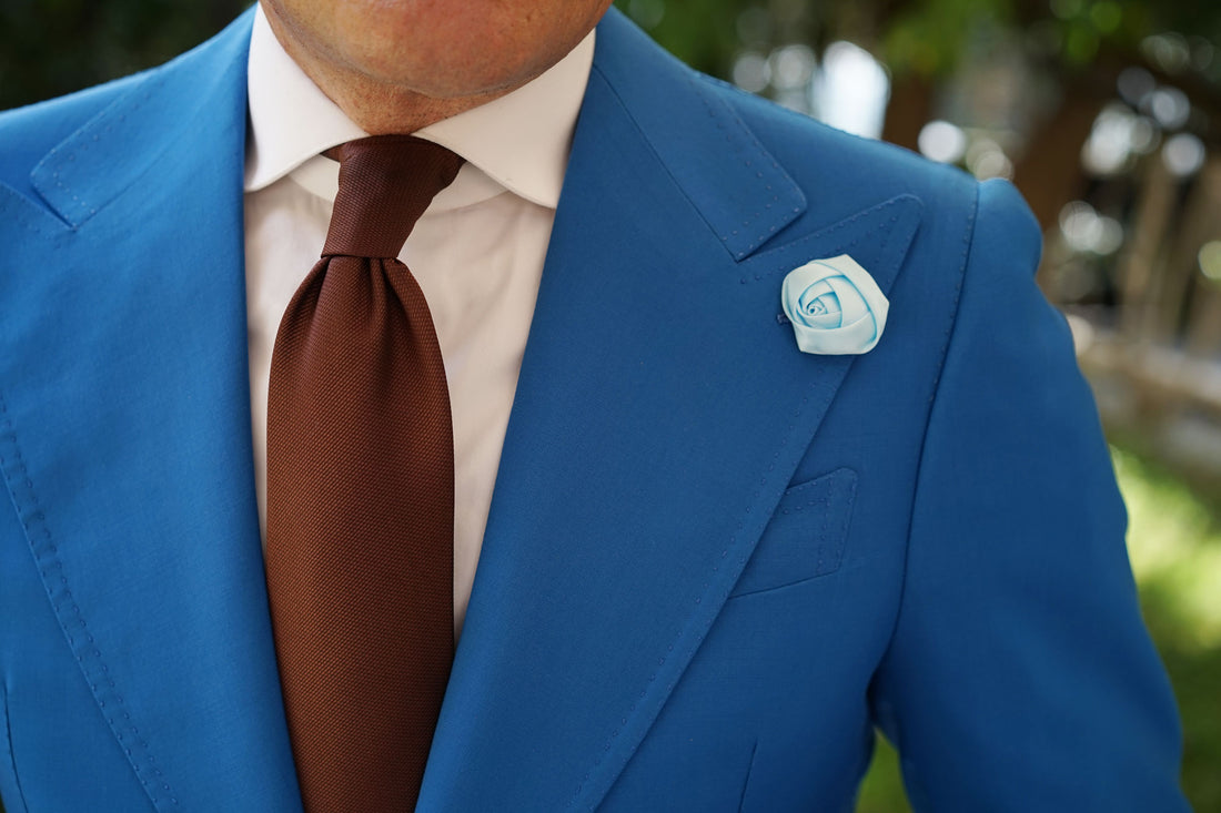 Inspired by the jewel-hues of the sea, OTTA's Sea Foam Blue Lapel Flower is an artisanal accessory to freshen up your looks. Brimming with a refreshing nautical palette encased in an elegant rose design, this lapel is flourishing with textural intricacy and expert craftsmanship. The luxurious folds of satin sits atop a hand-chiselled silver rhodium pin to deliver on quality and style. This satin-finish blue lapel is particularly attractive in its boldness. Wear yours to make your presence known, in the boardroom and beyond.