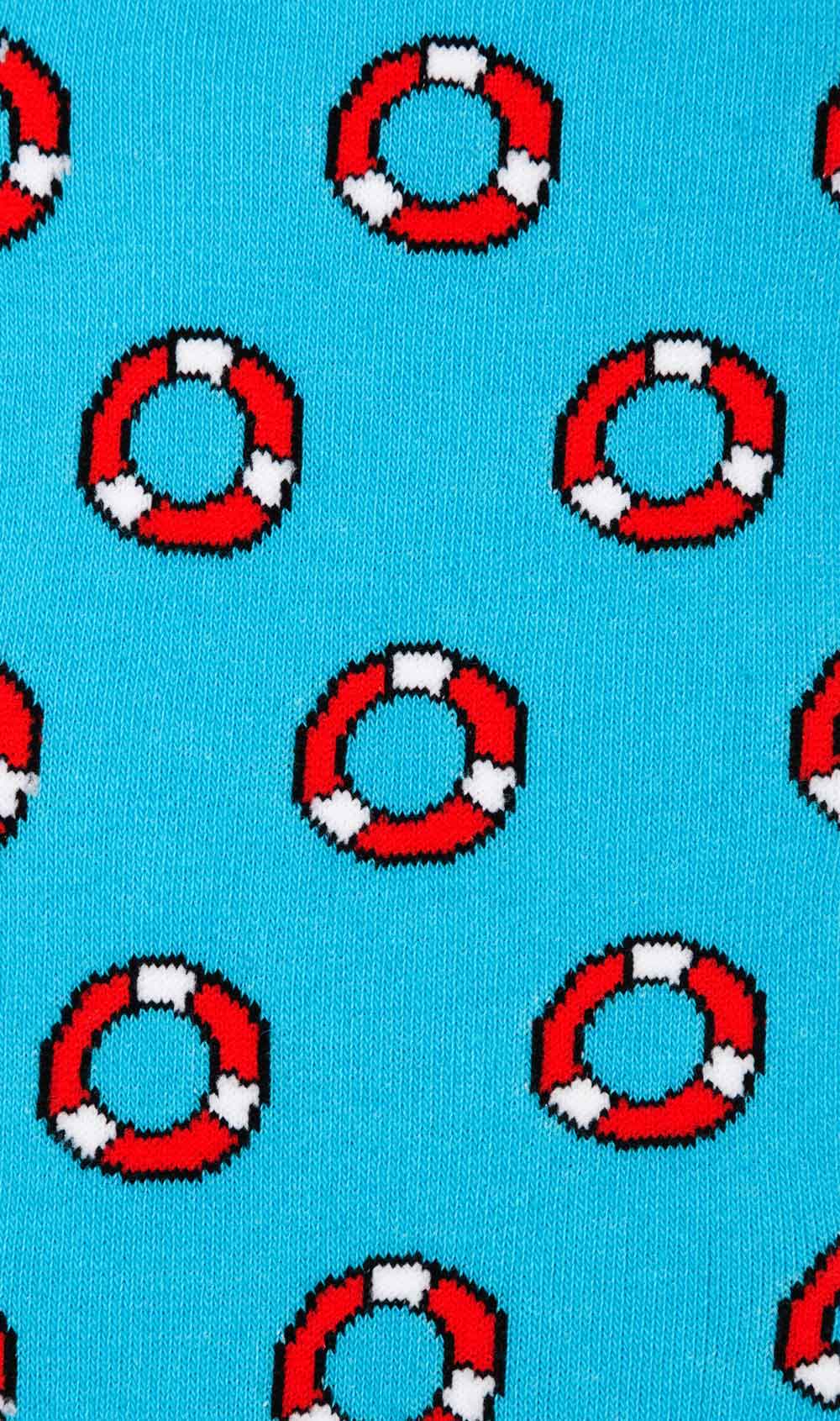 Add a streak of sophistication to your assemblage with these Sea Blue Nautical Float Socks. It takes a Bond-like persona to stand out from the crew and with these Sea Blue Nautical Float socks on foot, you'll be ready to hit the jet skis. Expertly crafted from a plush combed cotton material and finessed with a luxurious 200 needle stitch, you'll be equally matched for style and comfort. The double-shaded blue palette with red highlights is a sure fire way to add flamboyance to the ensemble.
