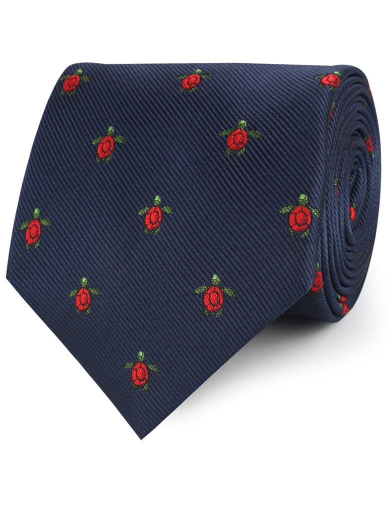 Lavishly tessellated with green and red hues, this Sea Turtle Tie features a sophisticated navy blue base. The sea turtles are hand-stitched with intricate detail and sit atop a hand-tailored, soft navy blue fabric; showcasing a level of unsurpassed quality. Let this superb Sea Turtle Necktie make a nautical statement as part of your boardroom and off-duty ensembles. Designed exclusively by the Brothers at OTAA.