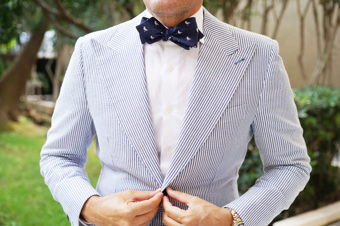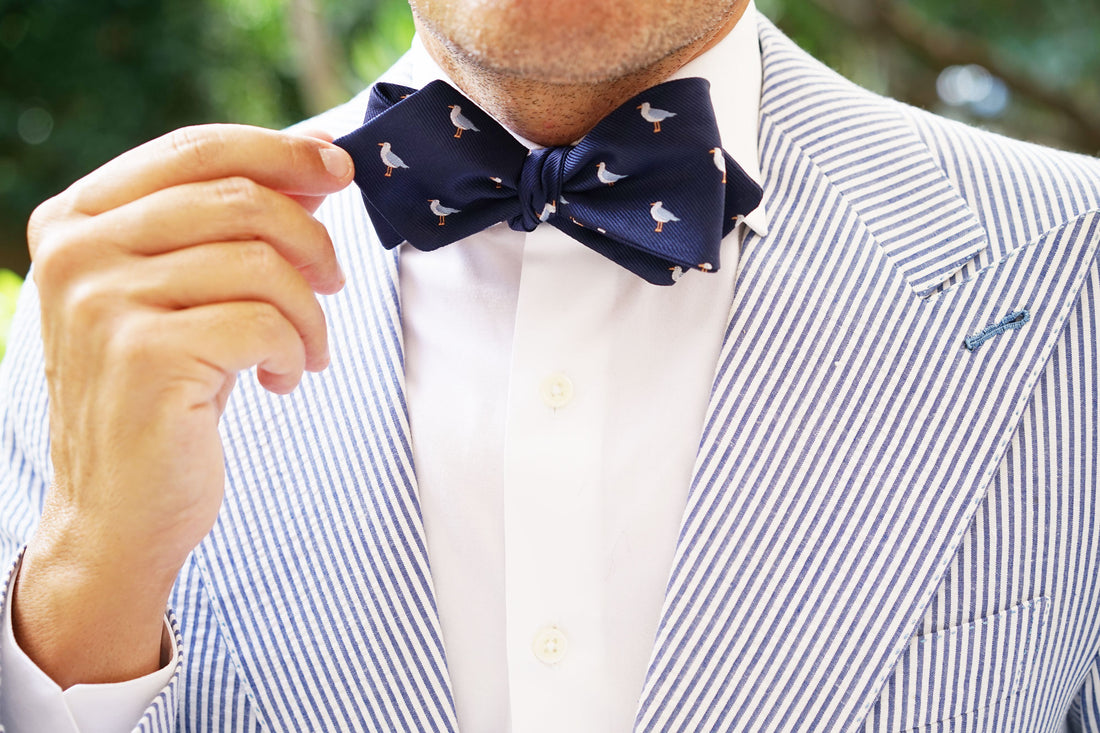 Spun by the hand, OTAA's Seagull Bird Diamond Bow Ties Self-Tie puts a nautical spin on the ever-popular bird motif. Designed with a dark navy blue backing, this Seagull Bird Diamond Bow Ties Self-Tie piece is ideal for year-round layering.
