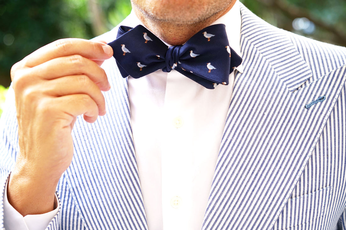 Seagulls are highly intelligent birds. They use breadcrumbs to attract fish and produce rain-like sounds with their feet to attract earthworms hidden under the ground. Seagulls transfer all hunting skills and techniques to their offspring too. Inspired by the pragmatic bird, OTAA's Seagull Bird Diamond Bow Ties Self-Tie is handmade with a fun design palette that even the most avid twitcher would appreciate.