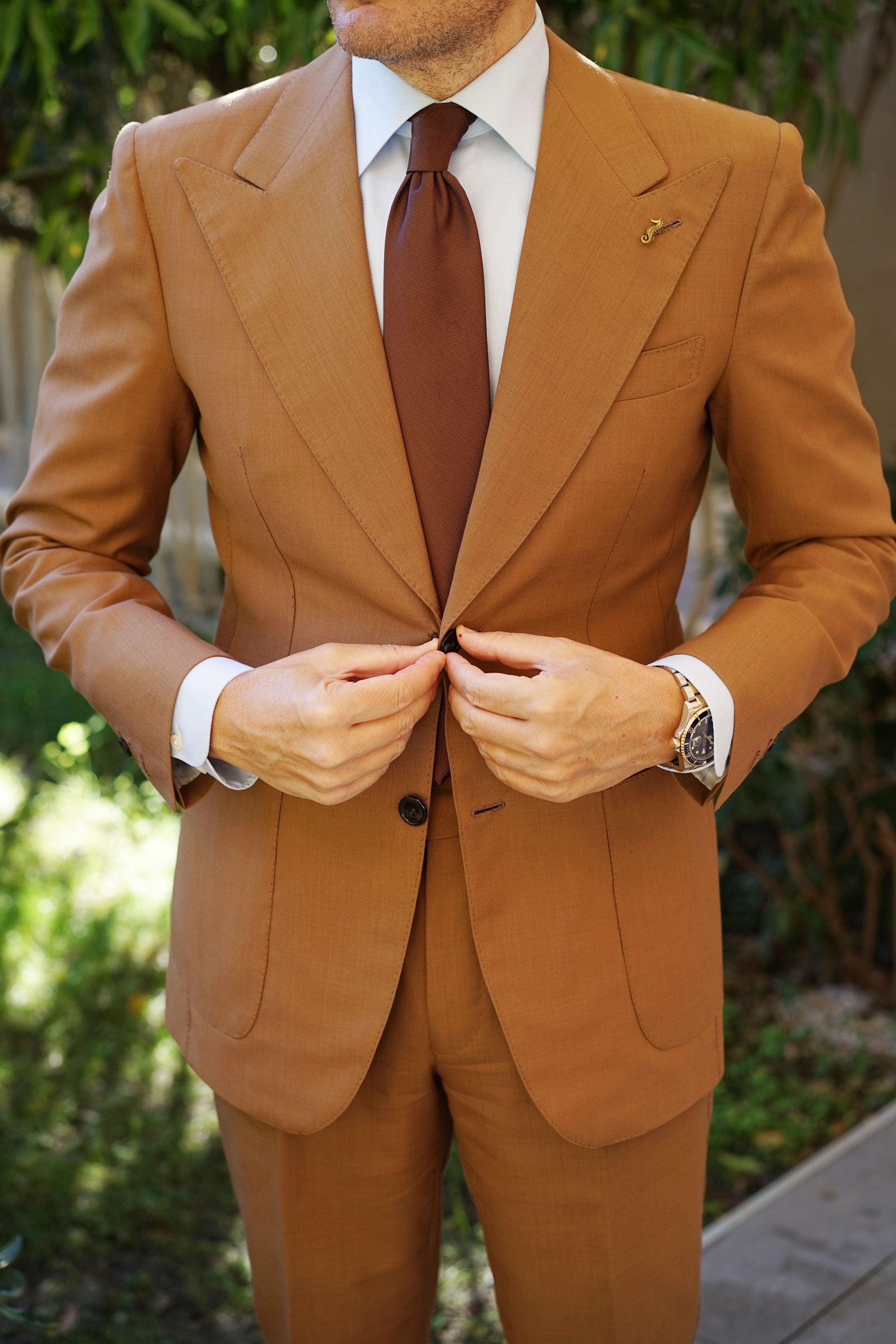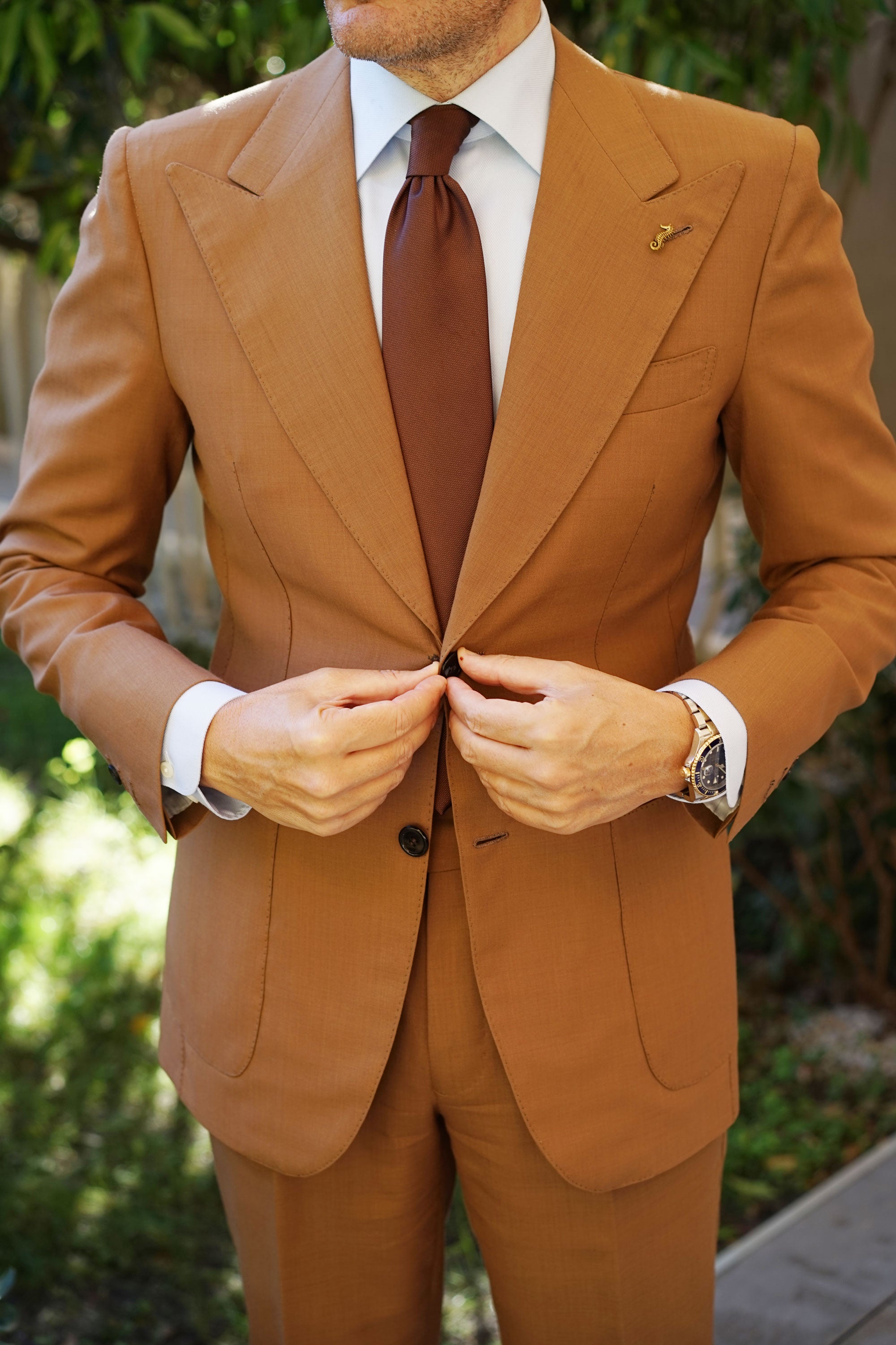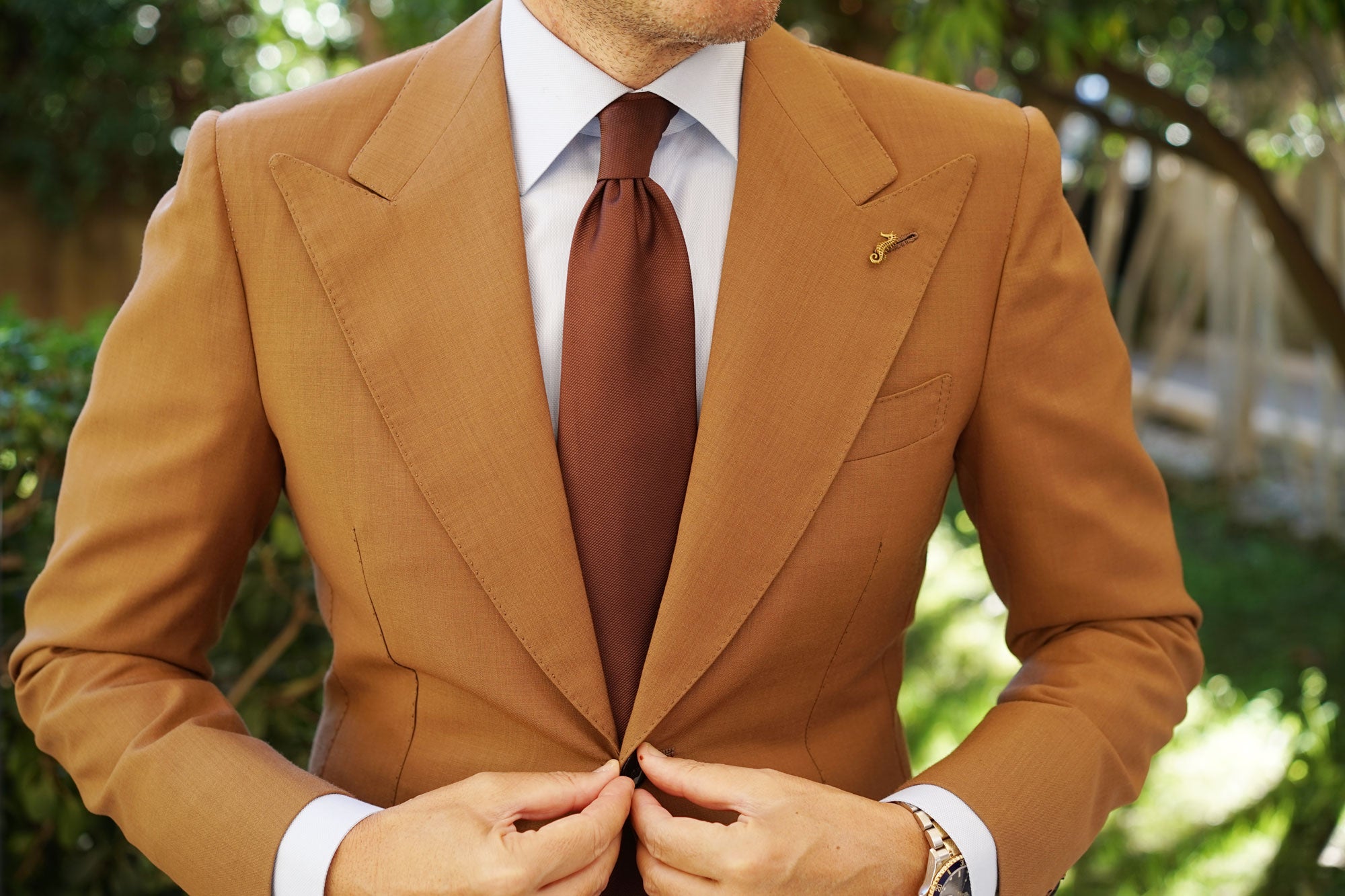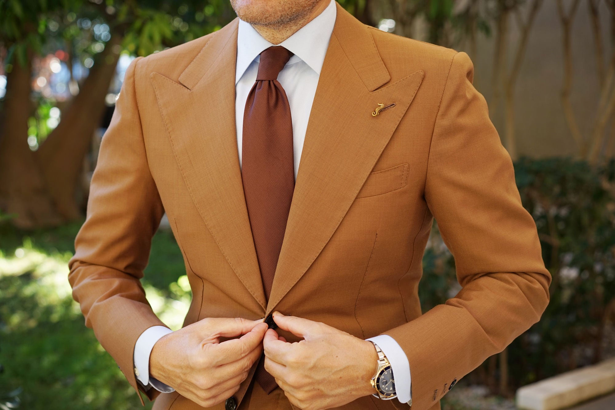 This lapel is expertly hand-chiselled from rhodium and finessed in antique gold. Clever craftsmanship is promised through the incredulous spiked etchings embossed throughout. With a rich antique gold finish, your suit will be highlighted with a vintage feel. Pair this Seahorse Lapel Pin with a considered suit to turn heads at the board room and beyond.