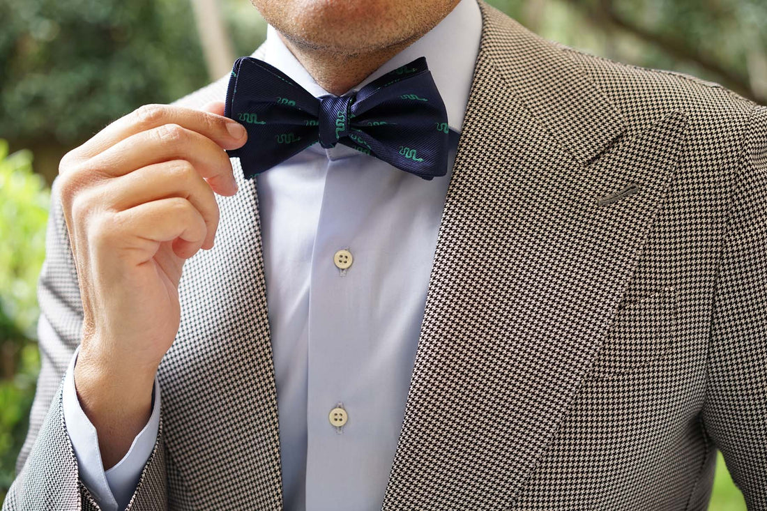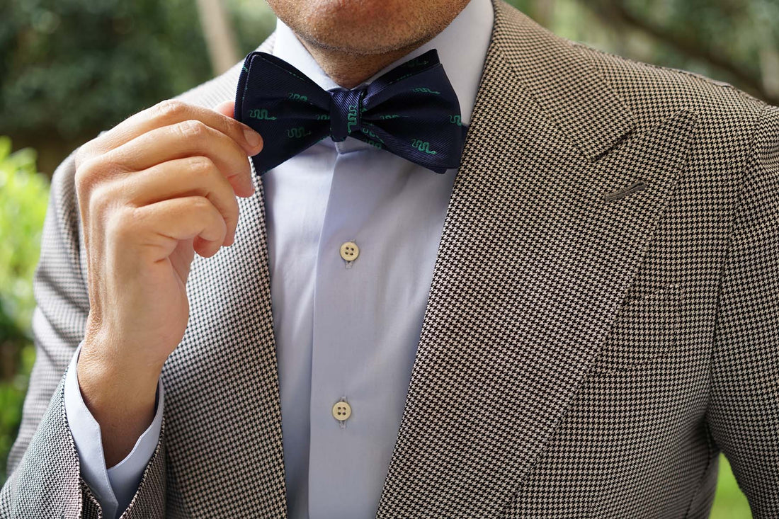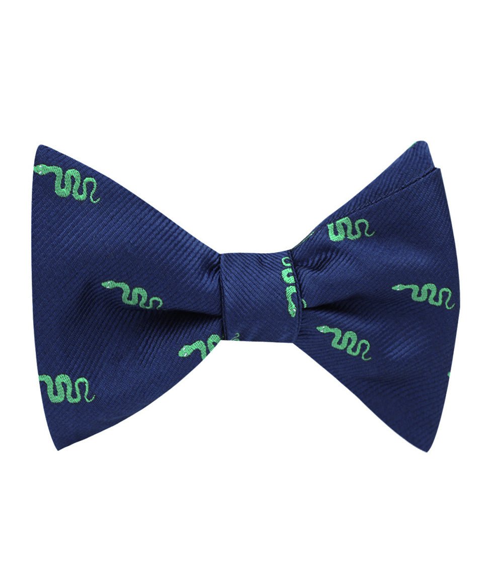 Slither into superior style with OTAA’s Serpico The Snake Self Tie Bow Tie. The ancient Greeks featured snakes prominently in their mythology. Because of their lidless, unblinking eyes, snakes were seen as creatures of divine wisdom and reason. Despite their alien movements and thought processes, snakes have remained at the epitome of human wonder for the course of centuries. Thankfully we now have David Attenborough to help us out.