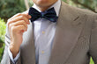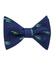 OTAA's Serpico The Snake Untied Bow Tie features vibrant green snakes that slither across a navy blue canvas. Crafted by hand and tailored from a plush, finely woven fabric, the Serpico The Snake Self Tie Bow Tie demonstrates the label’s high-quality philosophy. Luxuriously textured with diagonal lines, this Untied bow tie brings a multifaceted feature to considered suit styles. Designed exclusively by the Brothers at OTAA.