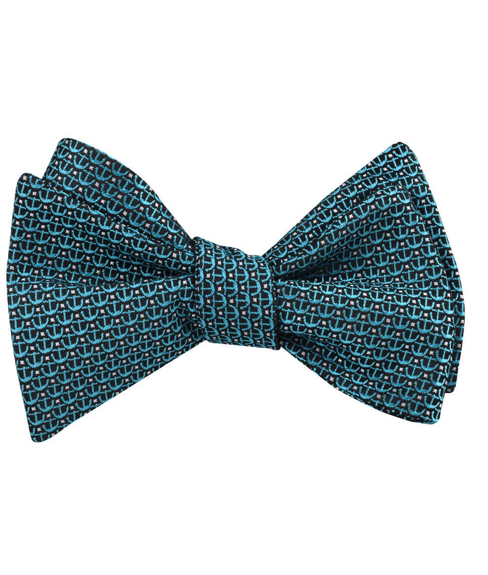 The gentle sheen of the teal anchor motif cascades over the smooth matte black satin surface like the scales of an exotic and stylish marine creature. Speckled with steel grey markings, the Seychelles Teal Anchor Untied Bow Tie is perfectly finished, just like your outfit will be when donning this stellar pick.