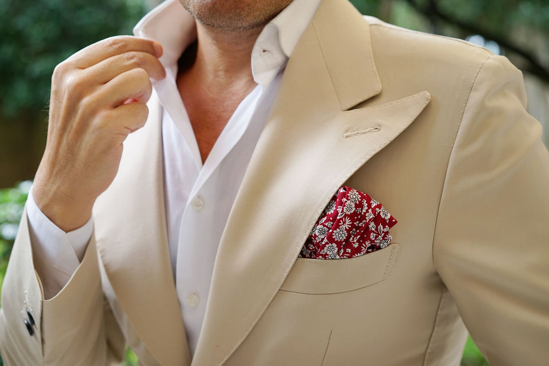 Shizuoka Merlot Red Floral Pocket Square Fabric