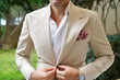 The minimal palette lends weight to the simplistic elegance of this handsome Pocket Square, relying only on the ornate illustrations of various flowers in bloom and the pleasing use of space to convey nuanced style and charm. Designed exclusively by The Brothers at OTAA, the eye-catching floral motif sits against a merlot backing. The linen is finely woven, giving a slightly coarse texture to the matte fabric of the Shizuoka Merlot Red Floral Handkerchief.