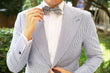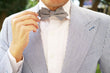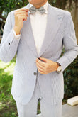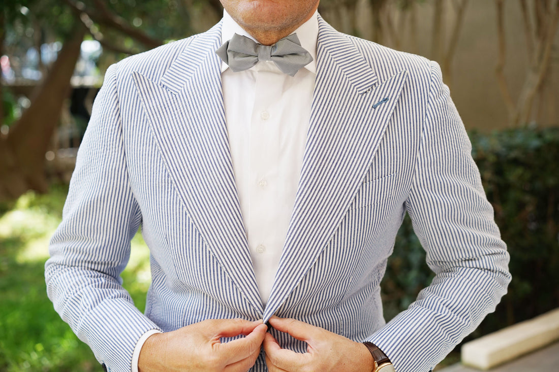 Gift your suits a formal flourish with OTAA's exquisite Silver Diamond Bow Tie. Making a regal statement with considered suits, the Silver Diamond Bow Tie will be your most reliable ticket to get you dressed to the nines! Because of its sheen, silver fabric, this diamond bowtie is a tonal masterpiece that will reward your wardrobe with a versatile advantage. Let the intricate line-backing enhance the textural outlook of your suits, and bring about a luxurious standpoint. This Silver Diamond Bow Tie has been stitched by hand and tailored from a plush fabric to ensure you comfort and style every time you head out the door. Designed exclusively by the Brothers at OTAA.
