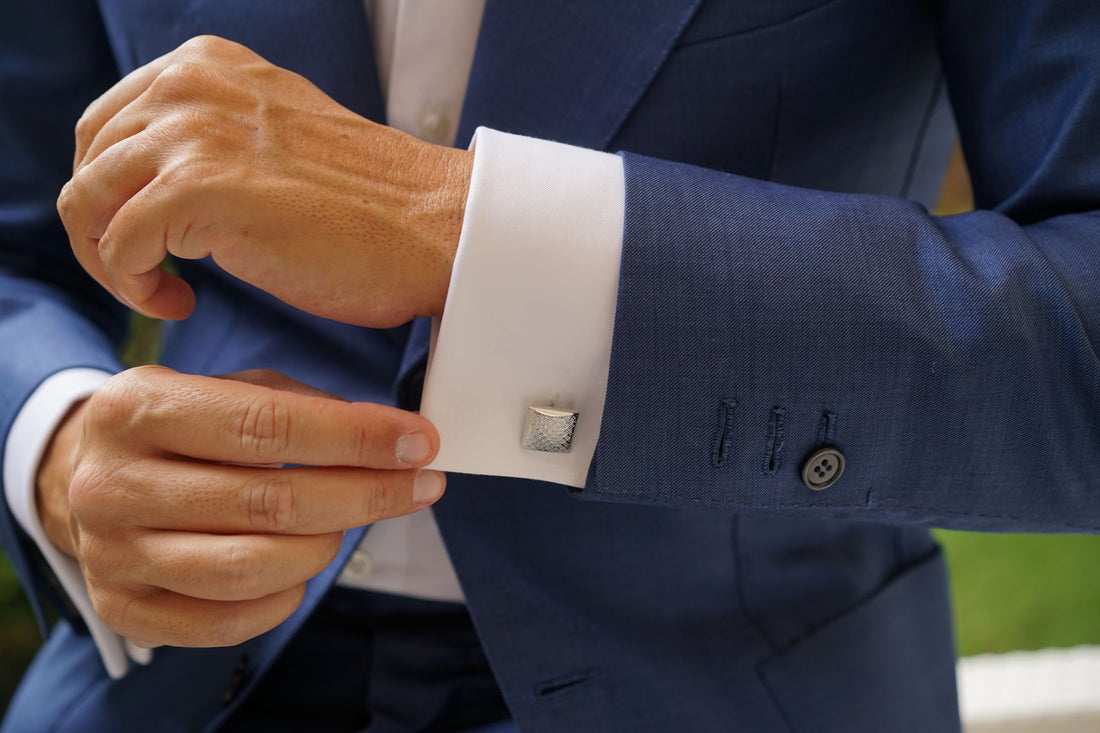 Designed exclusively by The Brothers at OTAA. The most rakish way to bring stripes into a formal outfit is undoubtedly with these Silver Square Dotted Textured Cufflinks. Hand-crafted, this silver pair features rhodium, ensuring no detail is left unattended to in this exceptional pair of cufflinks.