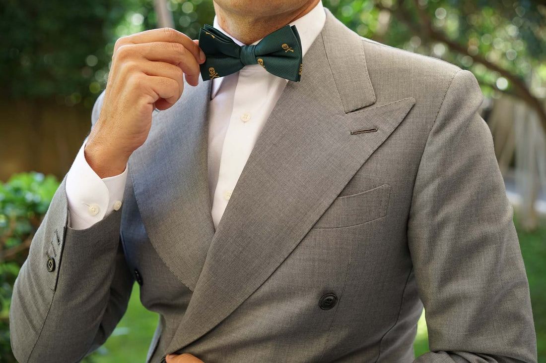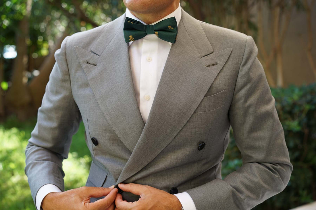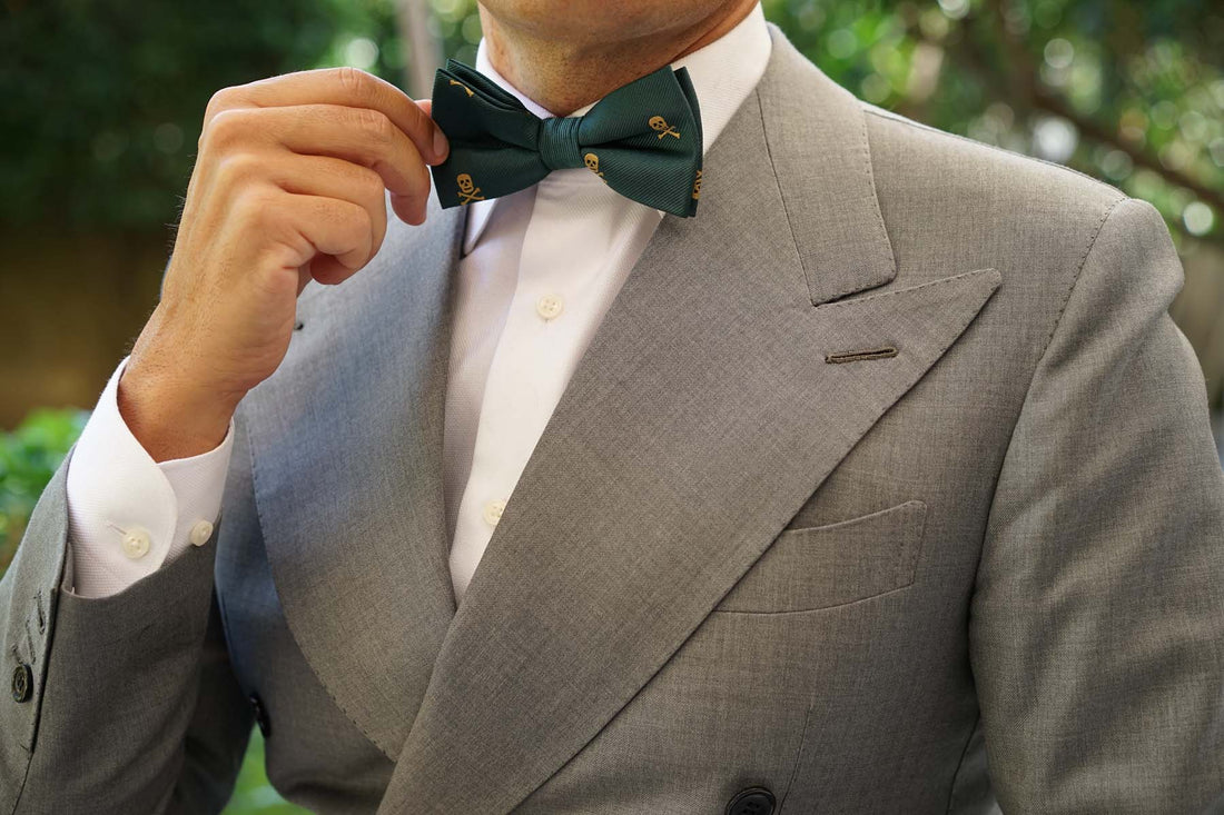 Sweetly speckled, OTAA's signature Skull & Crossbones Green Bow Tie features an array of small, golden skull heads across a background of rich, green satin. Made by hand, its soft and breathable material makes it a perfect accessory for spring and summer. Stay cool in style with OTAA's Skull & Crossbones Green Bow Tie.