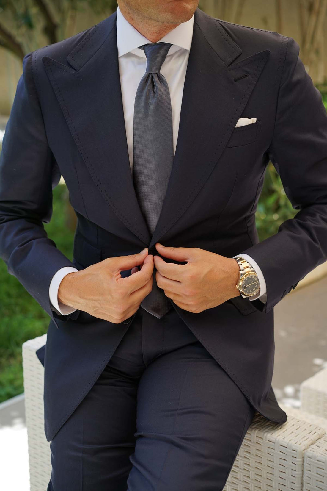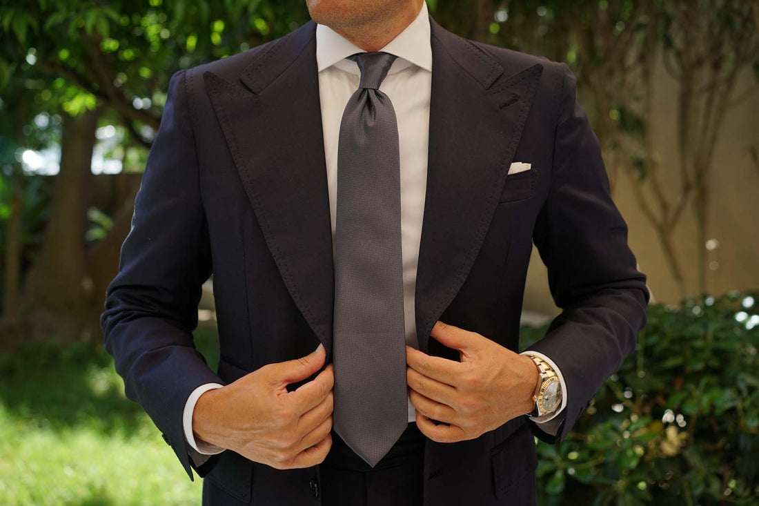 The intricately hand-woven, finely detailed basket weave pattern of slate grey charcoal satin lends a subtle depth and textured feel, with the combination of the wave with the silver sheen making for a piece that catches the light like no other. With the Slate Grey Charcoal Basket Weave necktie, you’ll likely catch a few eyes yourself. We should probably have put a warning on the box.