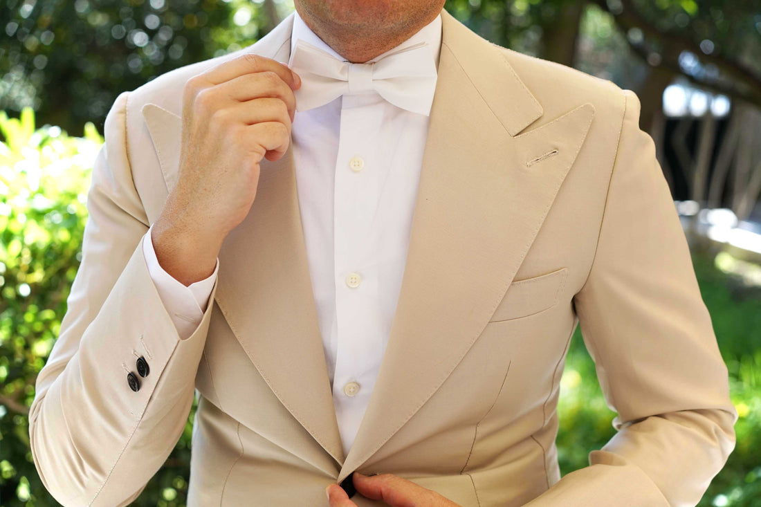 Suit up to perfection with the beautiful solid Snow White Satin Bow Tie. This microfiber stark Snow White Satin Bow Tie features a refined satin finish, giving just the right amount of sheen that's perfect for formal events, important business meetings or weddings. This durable tie is never short on style and you'll be receiving compliments for years to come.
