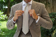 The Sterling Silver Grey Linen Necktie will add polished finesse to your formal ensembles. This Sterling Silver linen tie has a coarse feel, coveted for its purity and longevity. Inspired by the ingenious and intricate creations of the world’s greatest jewellers and the mystery behind their unbelievable skill, The Brothers at OTAA have refined the essence of sterling silver into the beautiful grey thread of this lavish necktie.