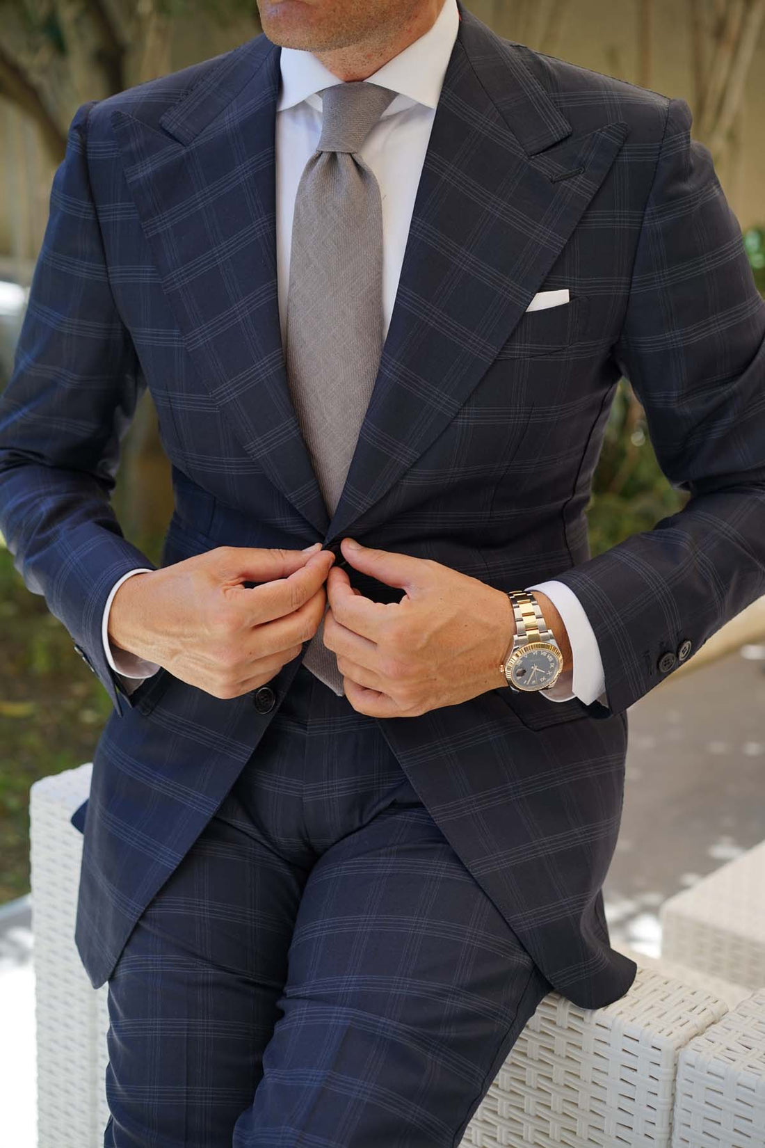 The stormy grey and smoky hues of the slub linen enrich the visual scope of the necktie with subtle variations in the texture and thickness of the hand-woven mercury thread. The linen fabric breathes well and is textured yet soft, making for a magnificent and versatile addition to your wardrobe that is sure to become your next staple accessory. The Stone Grey Portobello Slub Linen Tie is a must-have for your formal tailorings.